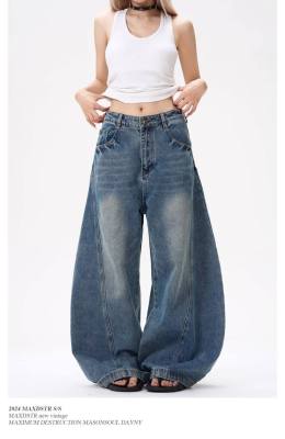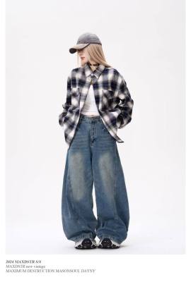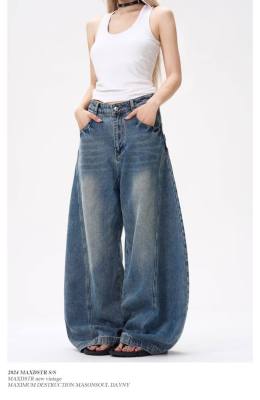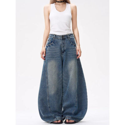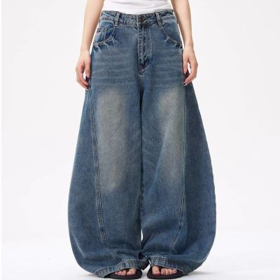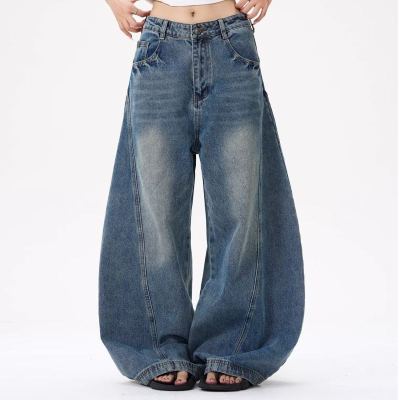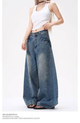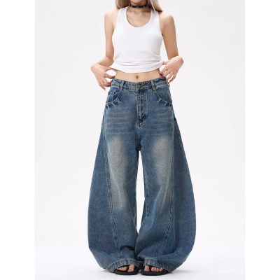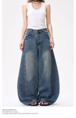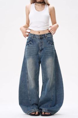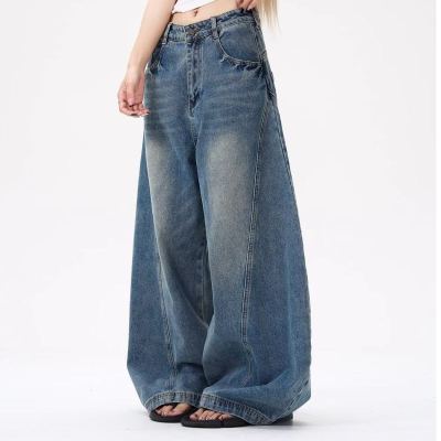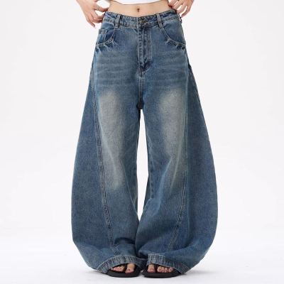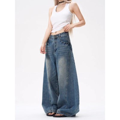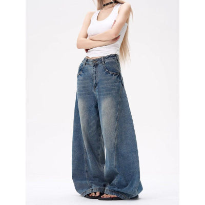 American wide-leg scimitar design niche street slimming jeans for all seasons