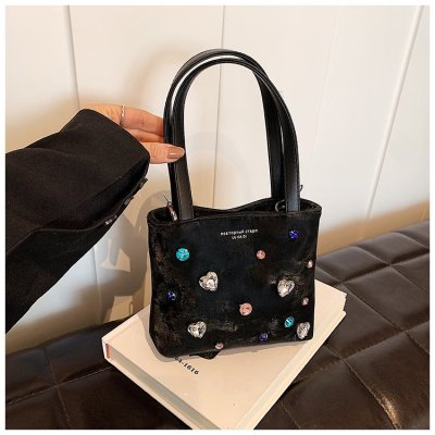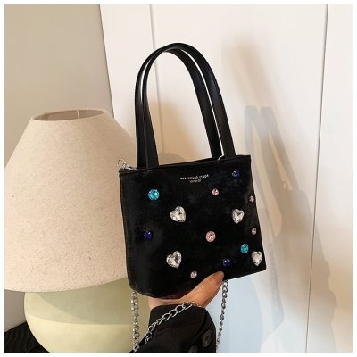 Niche texture small bag handbag women's 2024 new velvet diamond bucket bag high-end chain crossbody bag