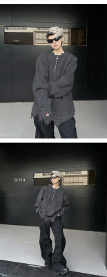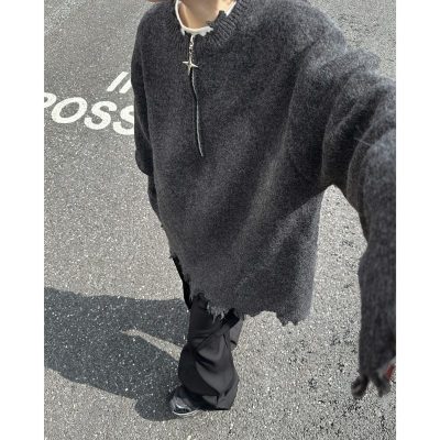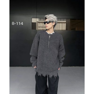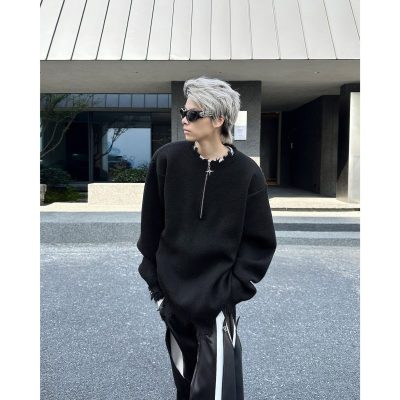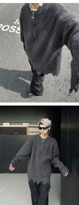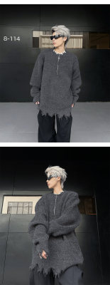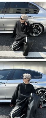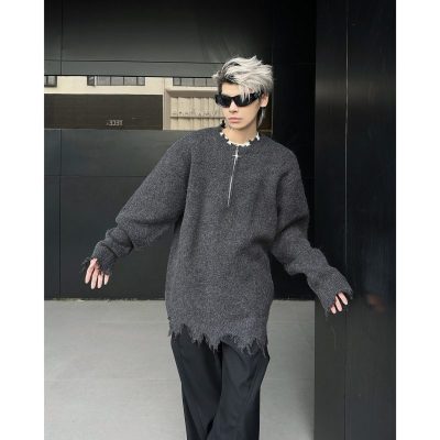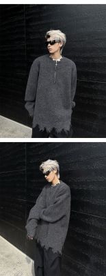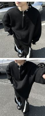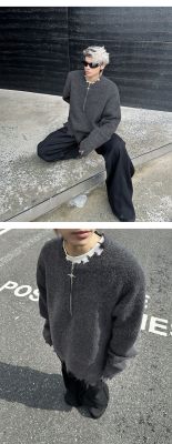 American high street wasteland style half-zip pullover sweater for men, autumn and winter street design sweater