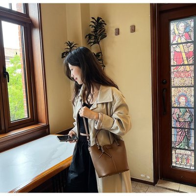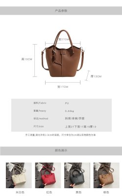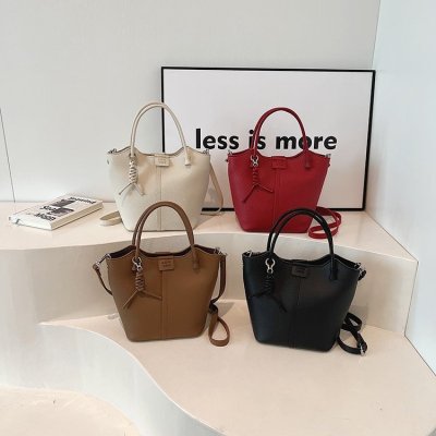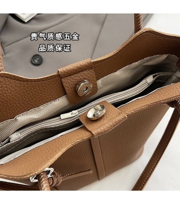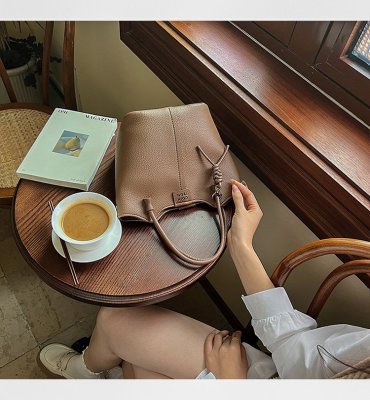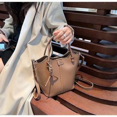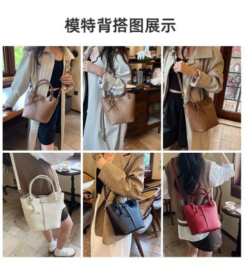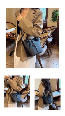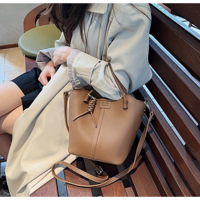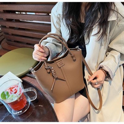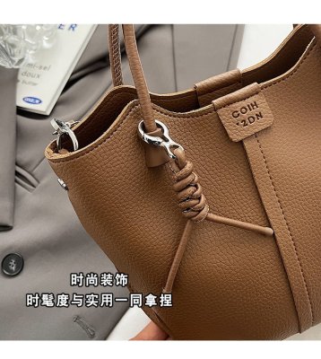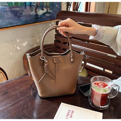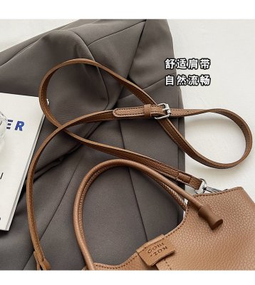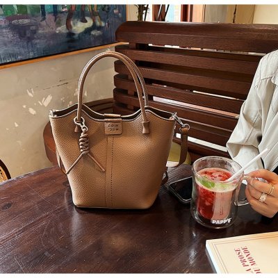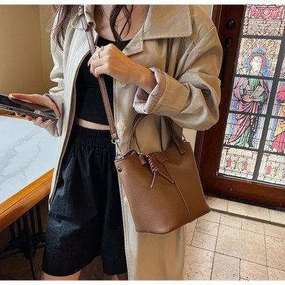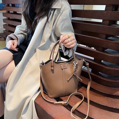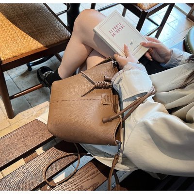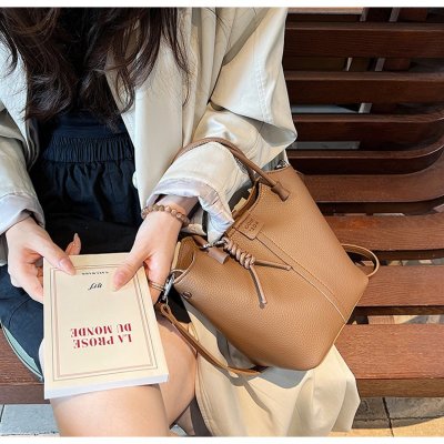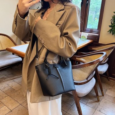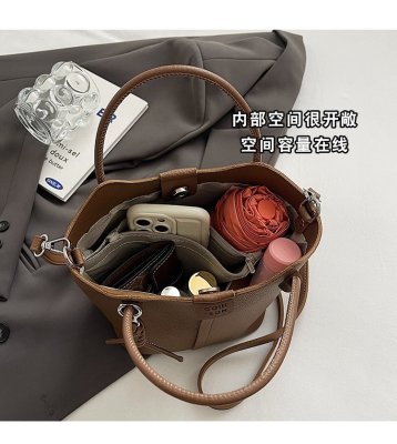 Large-capacity exquisite portable bucket bag for women 2024 new lychee pattern retro high-quality texture single shoulder crossbody bag