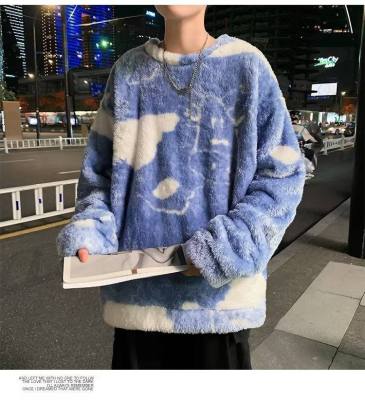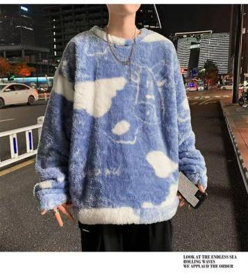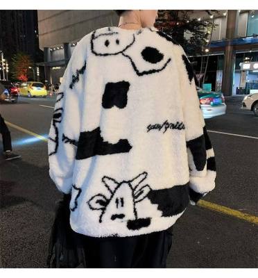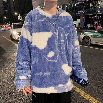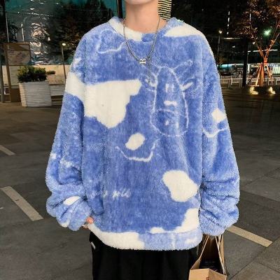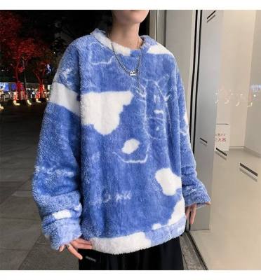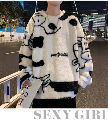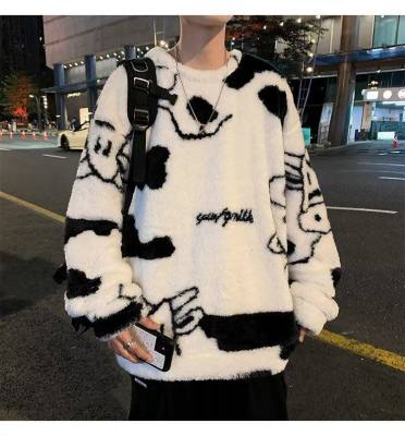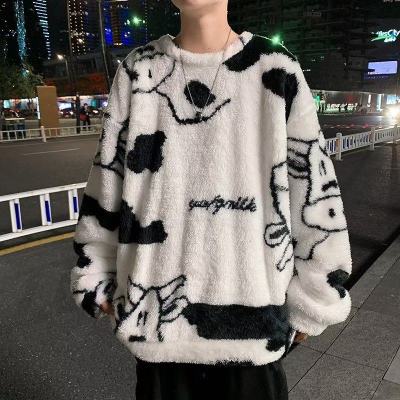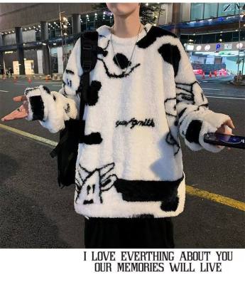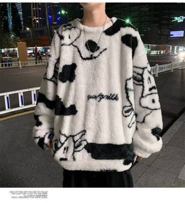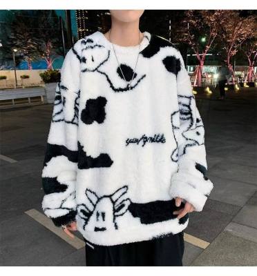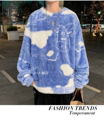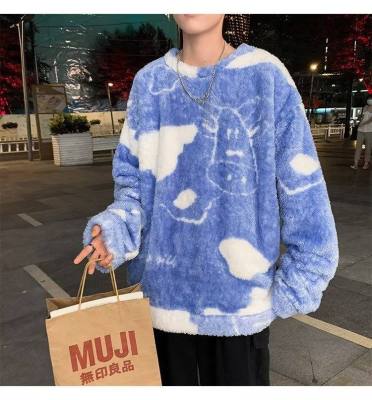 Autumn and winter lamb wool round neck sweatshirt men's Hong Kong fashion brand milk pattern coat loose top for couples