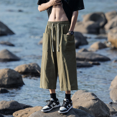 New Men's Cropped Pants Trendy Casual Wide Leg Pants Shorts Cargo Pants