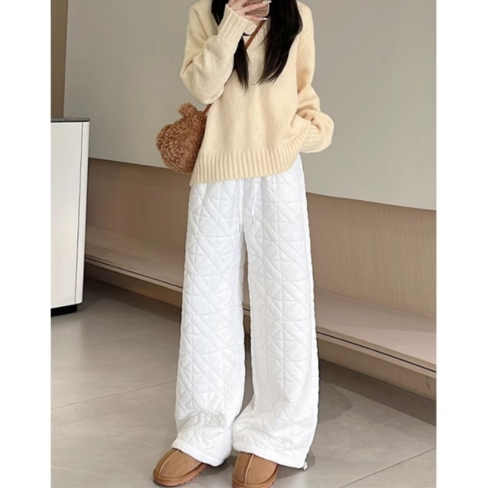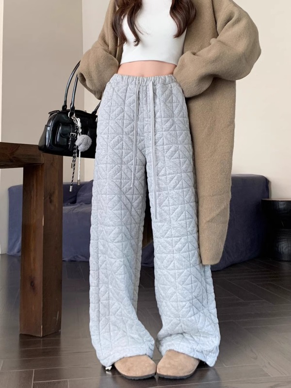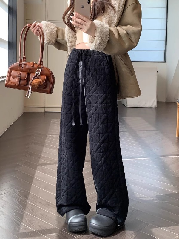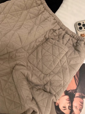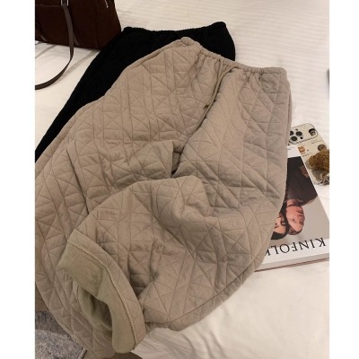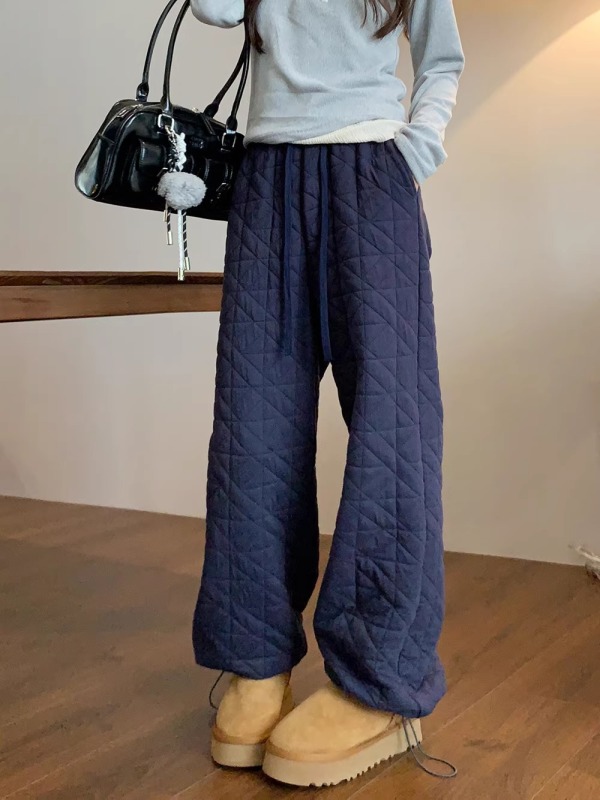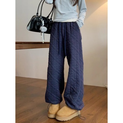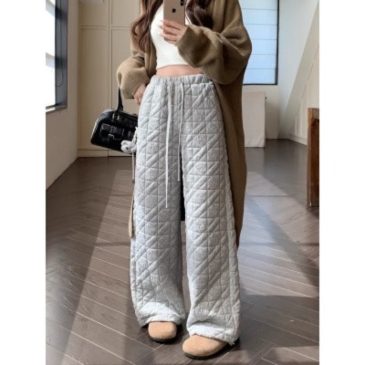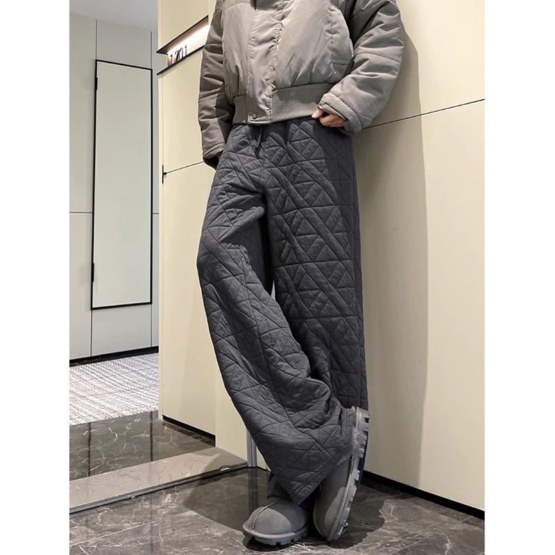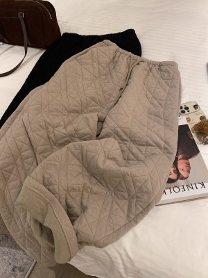 Dongdaemun, South Korea, autumn irregular rhombus quilted loose straight casual pants with elastic waist