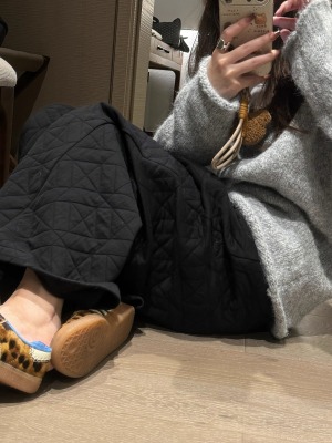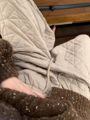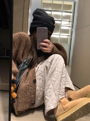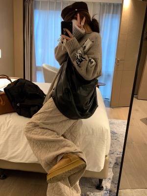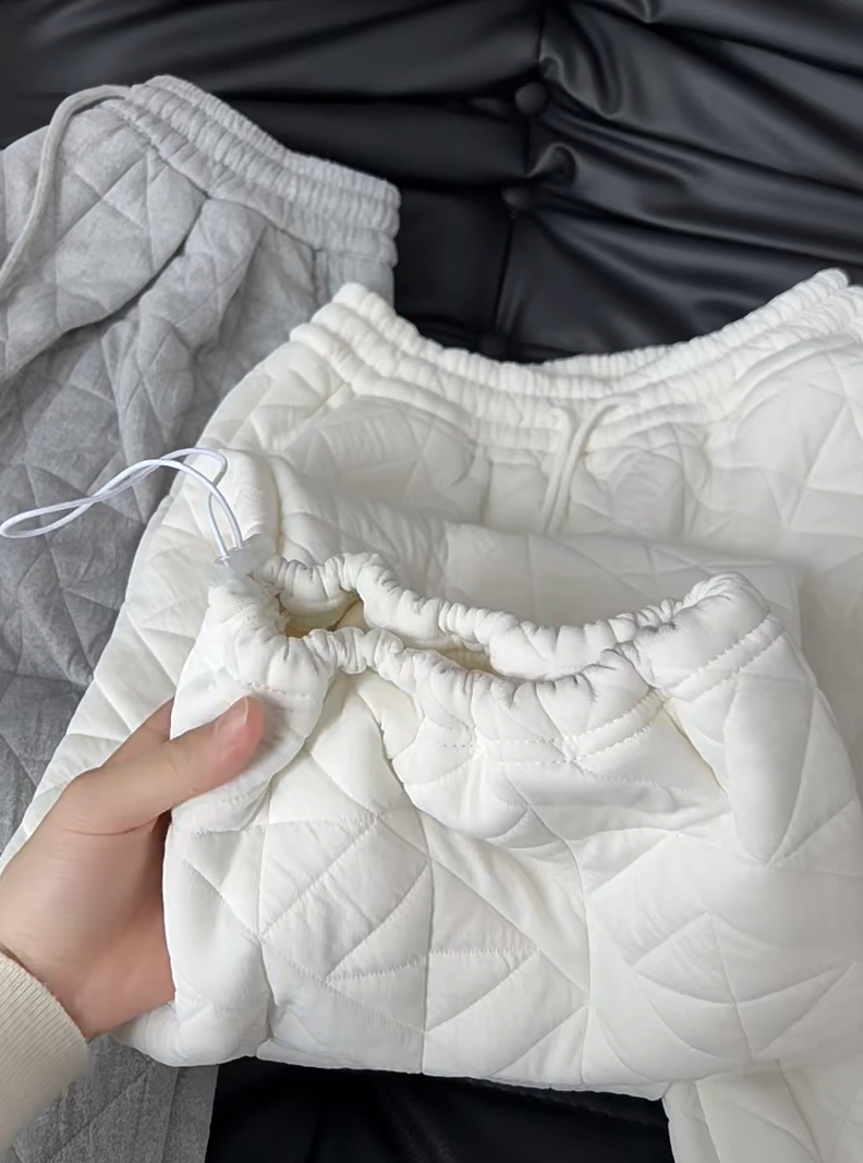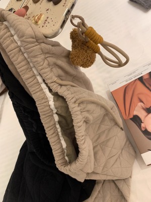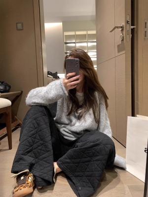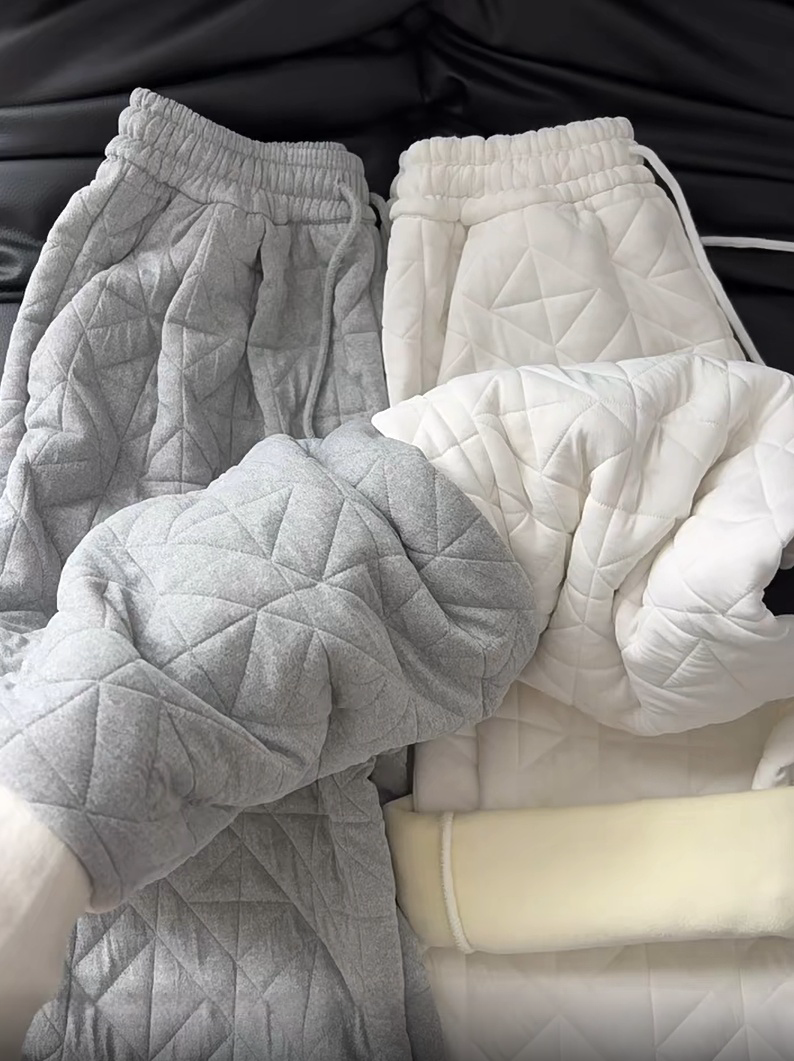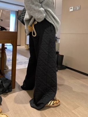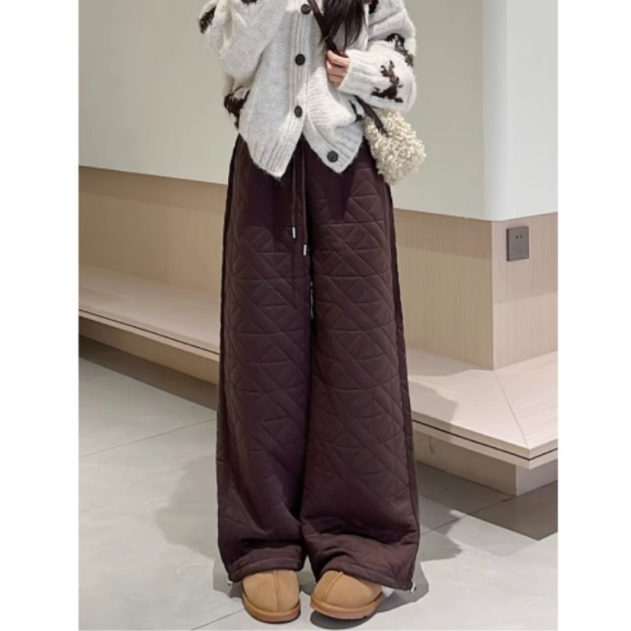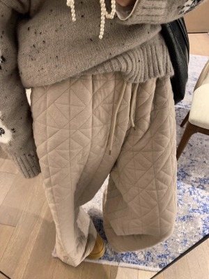 Dongdaemun, South Korea, autumn irregular rhombus quilted loose straight casual pants with elastic waist