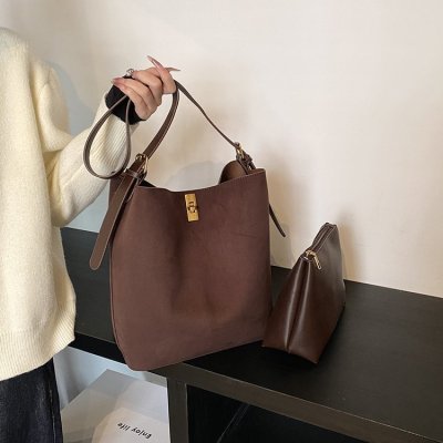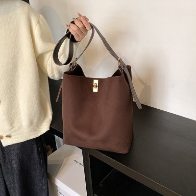 Retro autumn and winter fashion women's bag armpit bag 2024 new wide shoulder strap bucket bag frosted single shoulder crossbody bag
