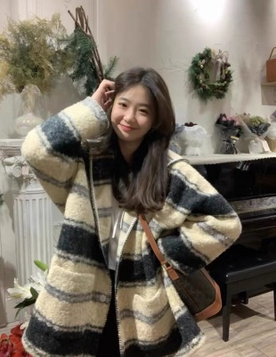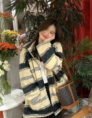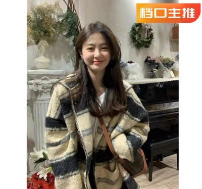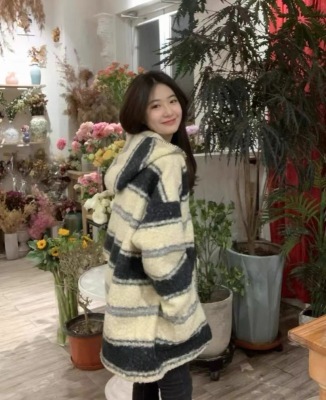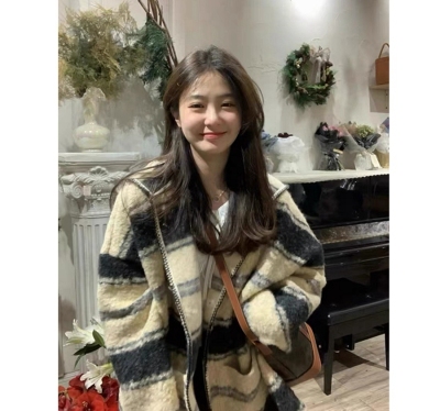 Lazy Style Striped Woolen Jacket Women's Autumn and Winter Korean Style Mid-Length Retro Design Niche Cardigan Hooded Coat