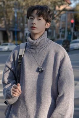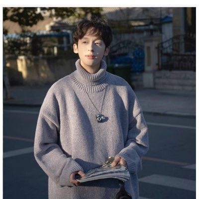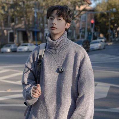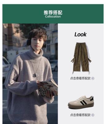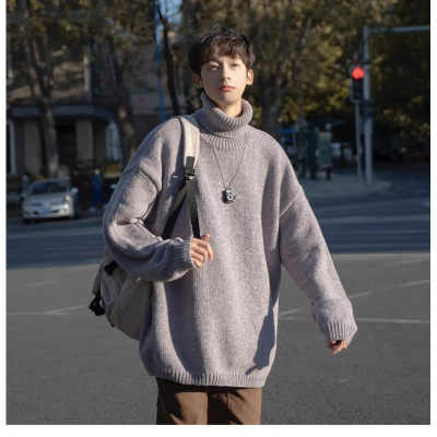 Japanese chenille turtleneck sweater for men in autumn and winter retro lazy style Korean style high-end knitwear