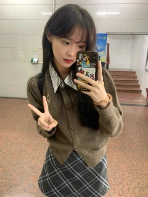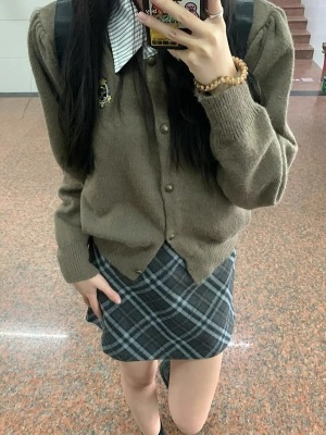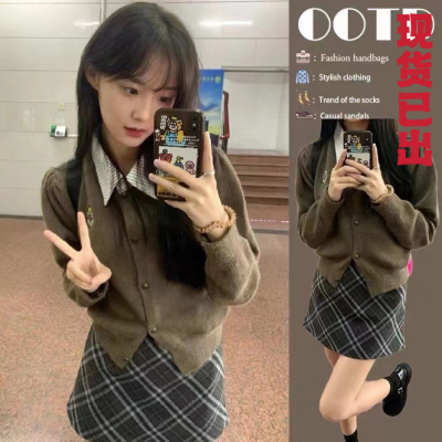 A complete set of tea-style outfits 2023 new early spring women's fake two-piece college style playful and lively age-reducing suit