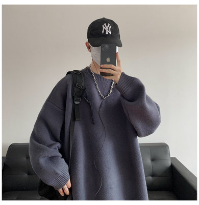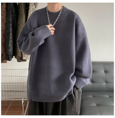 Men's autumn and winter round neck pullover loose and versatile knitted sweater