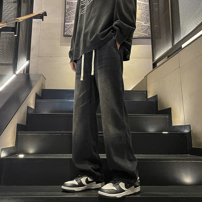 Straight-leg jeans for men, autumn new style, American retro elastic waist, casual loose wide-leg pants