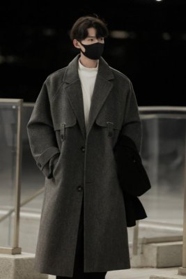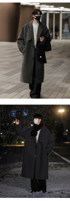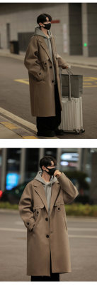 Woolen coat men's mid-length British style Korean style high-end handsome windbreaker jacket