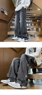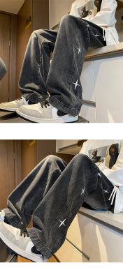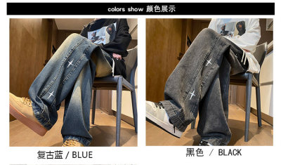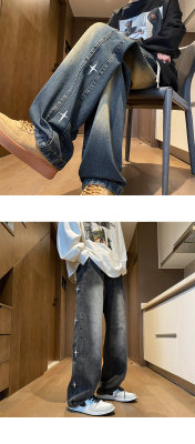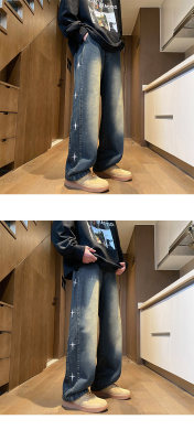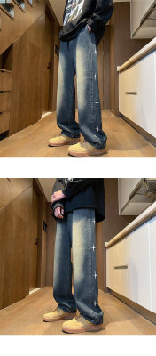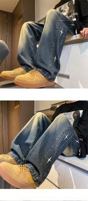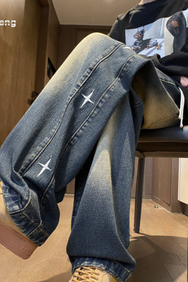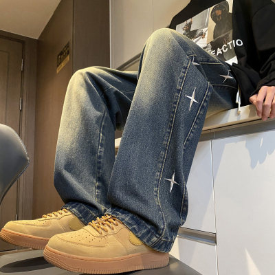 Spring new retro trendy side star embroidered loose jeans