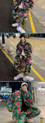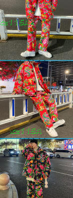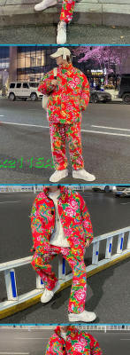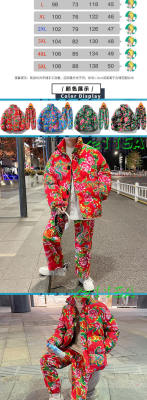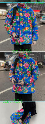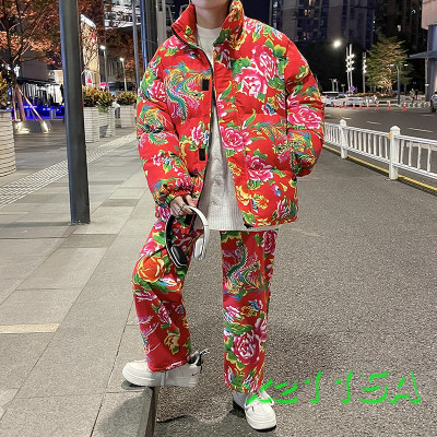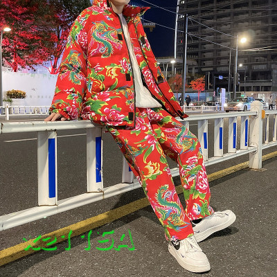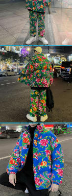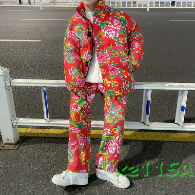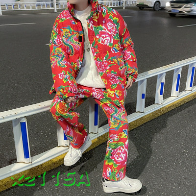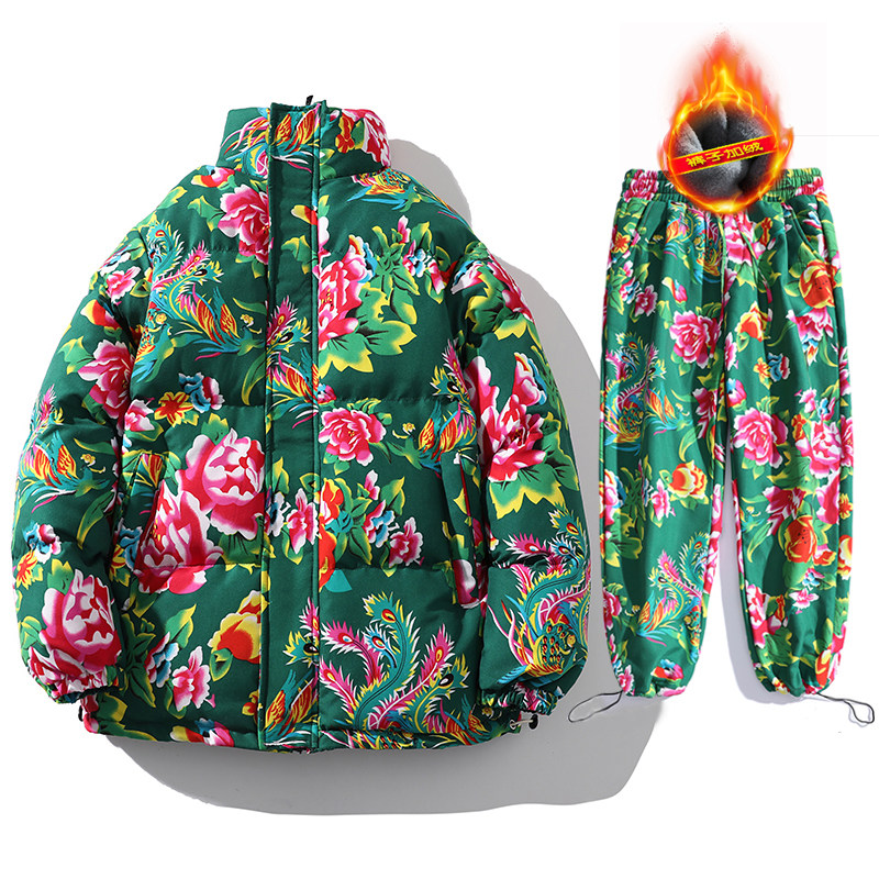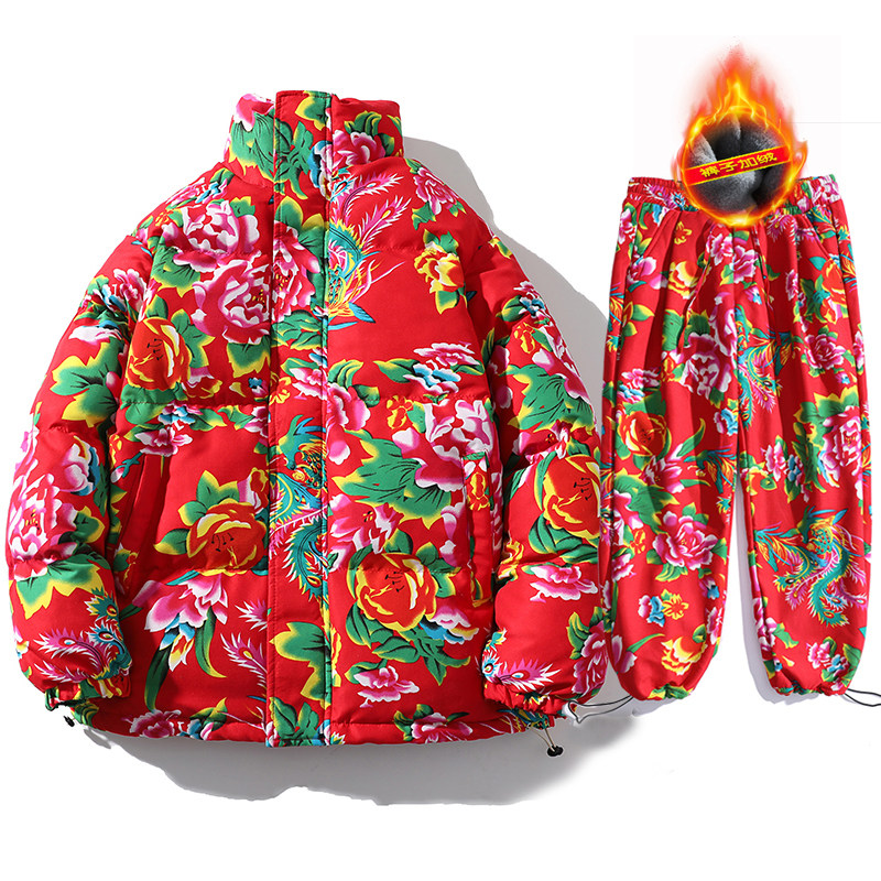 Z01 couple Northeast big flower Chinese style ethnic style special cotton coat and velvet pants suit plus size men and women trendy clothing
