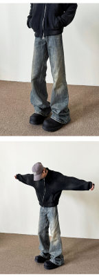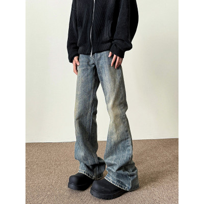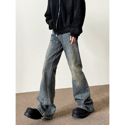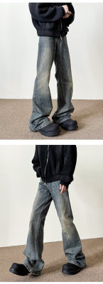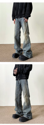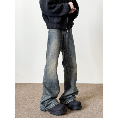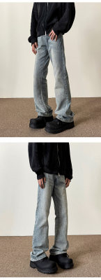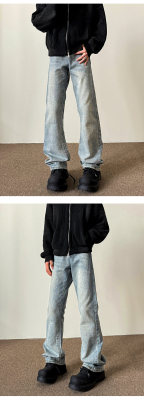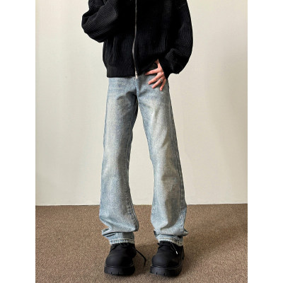 American washed retro blue jeans for men in autumn and winter new high street straight slim cleanfit slightly flared long pants