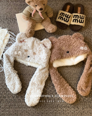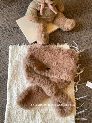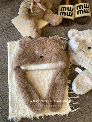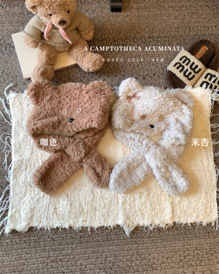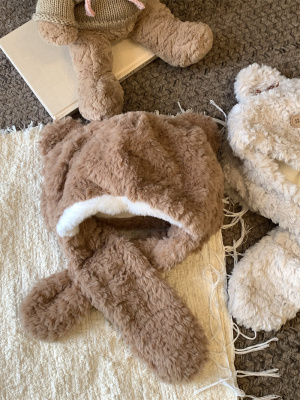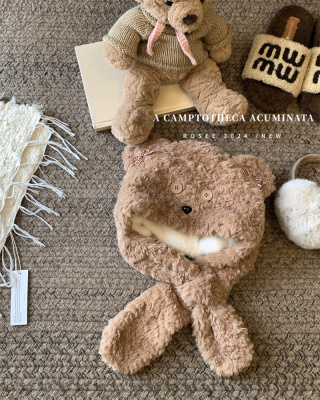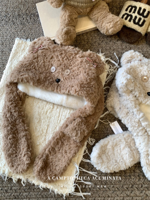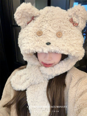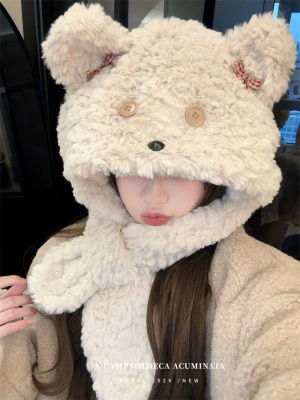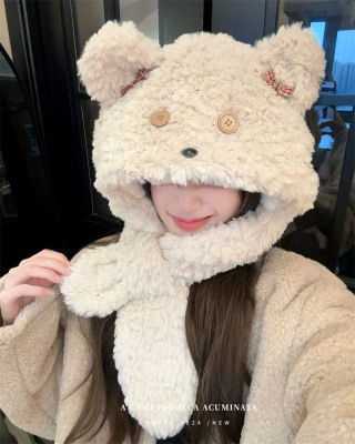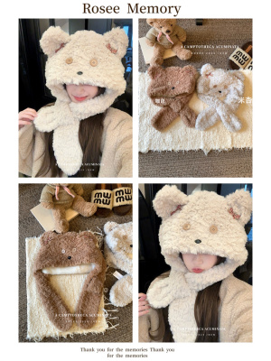 Cartoon Bear Plush Hat Autumn and Winter Scarf Hat One-piece Thickened Windproof Warm Scarf Hat