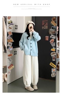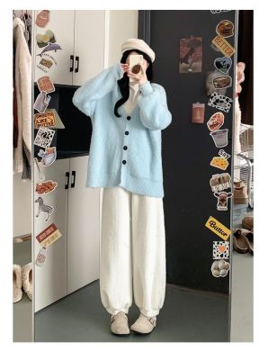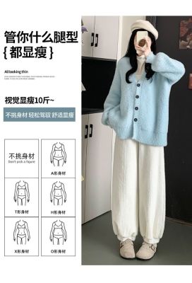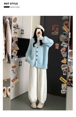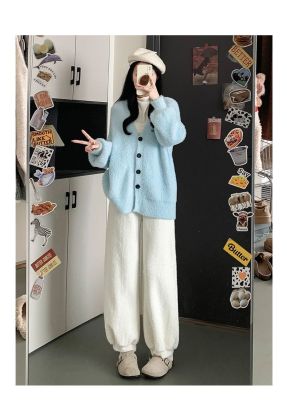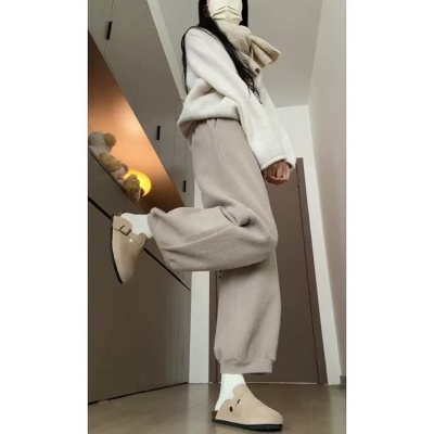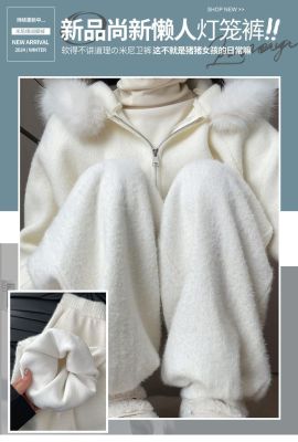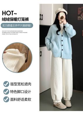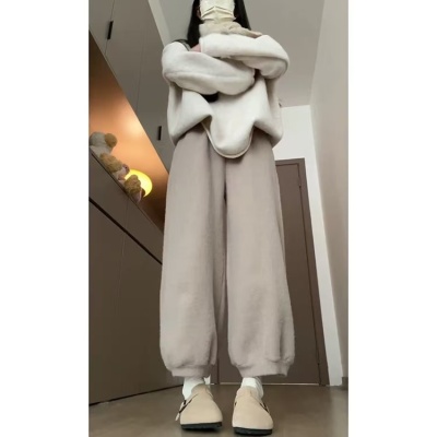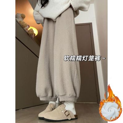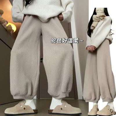 Soft plush harem pants for women 2024 autumn and winter new style lazy and relaxed straight-leg plus velvet thickened warm bloomers