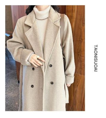 High-end woolen coat for women, fashionable autumn and winter new fashion Korean style loose mid-length thickened woolen coat trendy