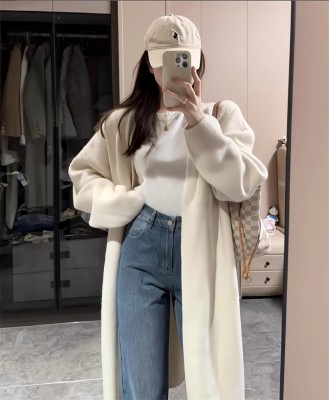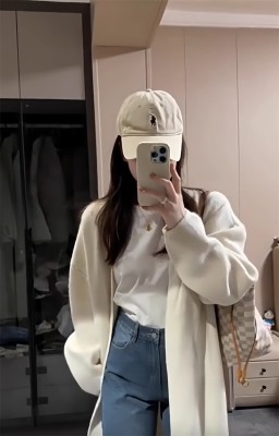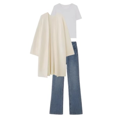Cream sweater and jeans