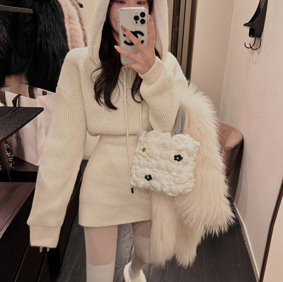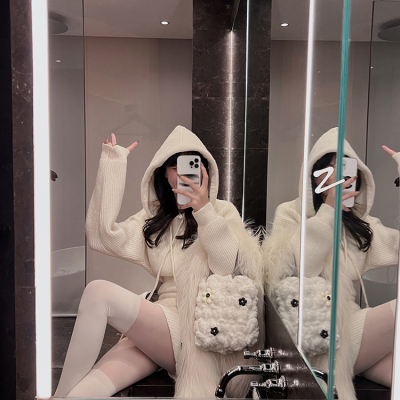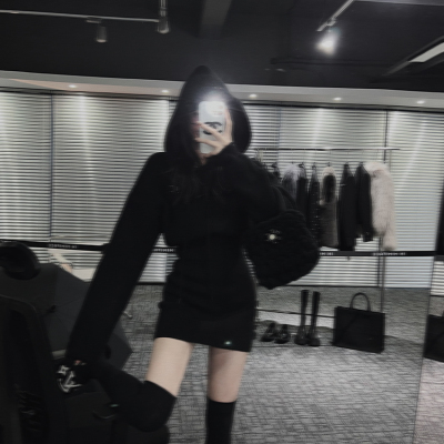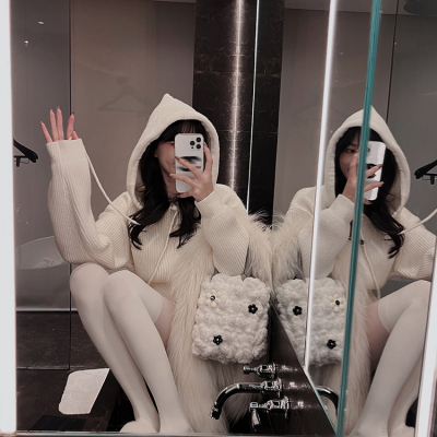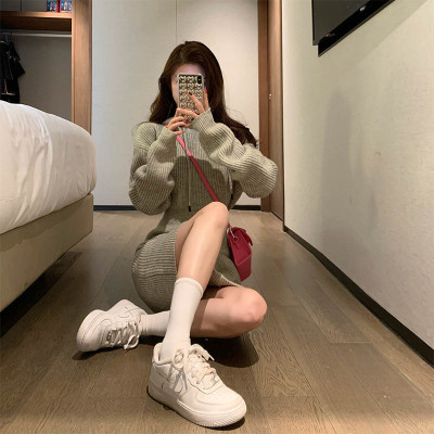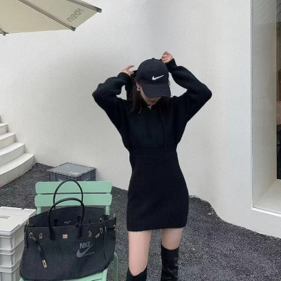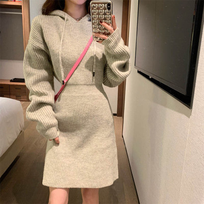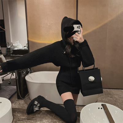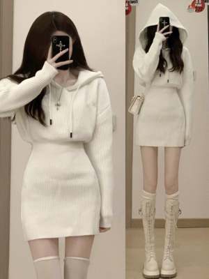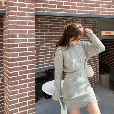 Pure lust style hooded knitted dress for women in autumn and winter with sweater skirt, sweet hot girl high-end hip-hugging sweatshirt skirt