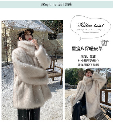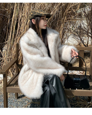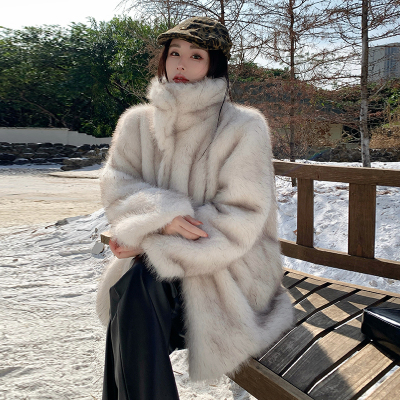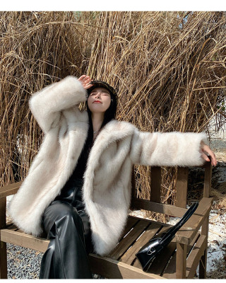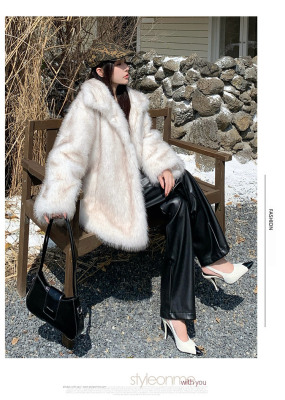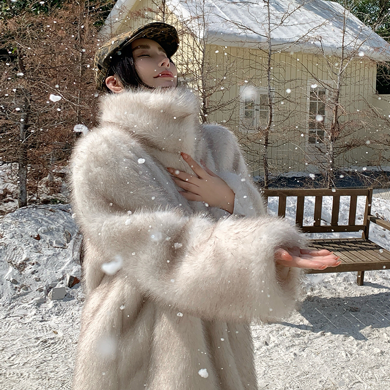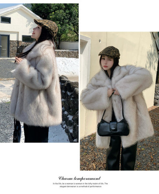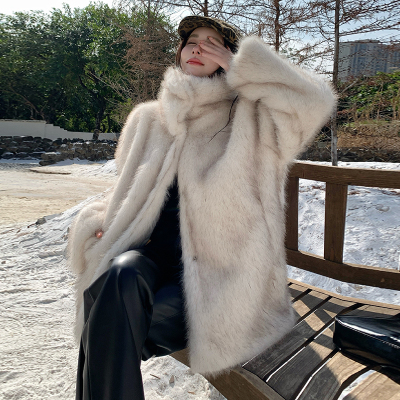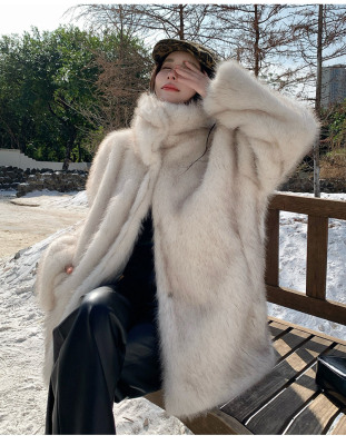 Actual shot of Korean style fur coat for women mid-length new winter style loose thickened eco-friendly imitation fox fur coat
