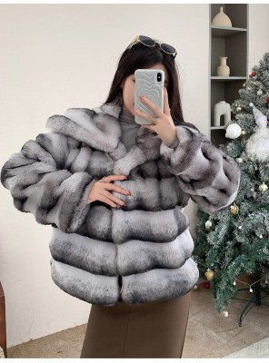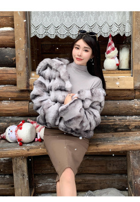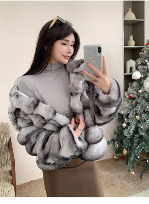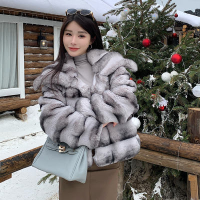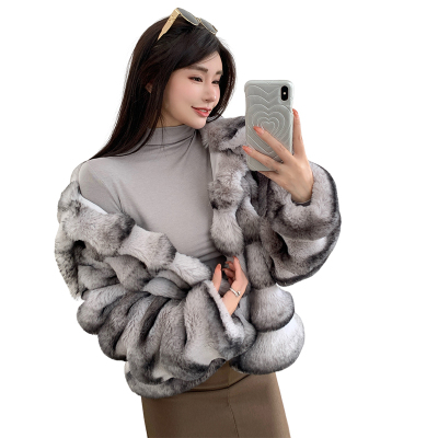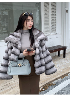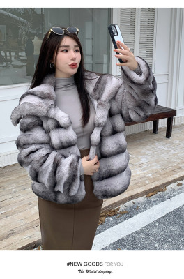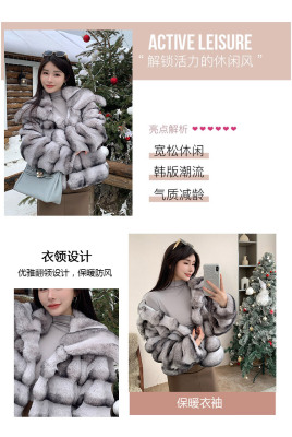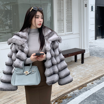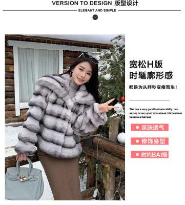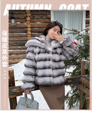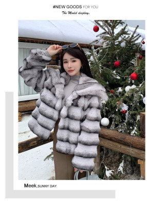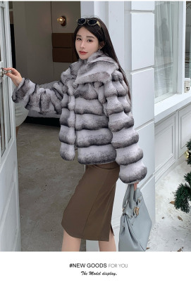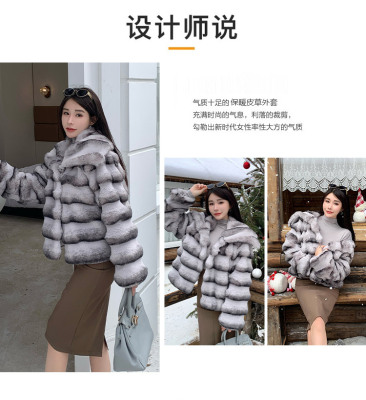Actual shot of new winter high-end imitation rex rabbit fur warm lapel fashionable lady striped fur short coat for women