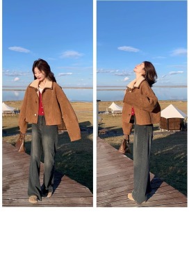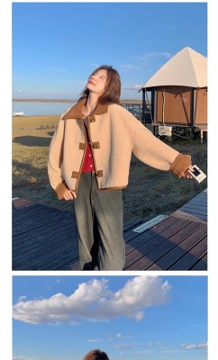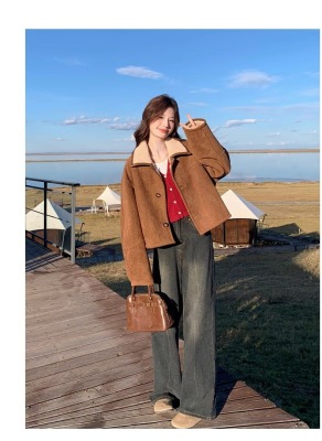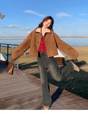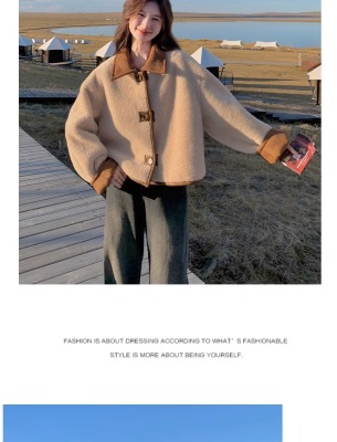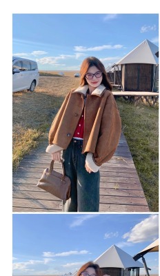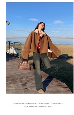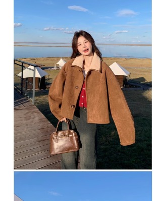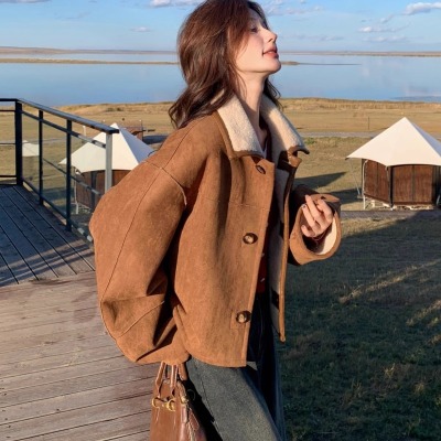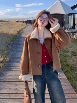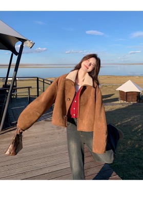 Fur-in-one reversible lambswool coat for small women, fashionable and temperamental, thickened short suede top