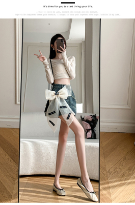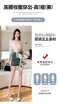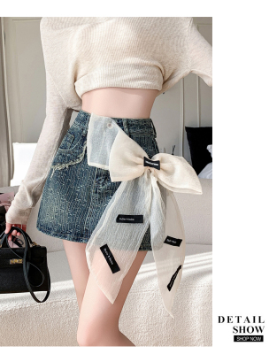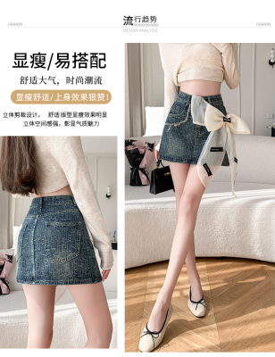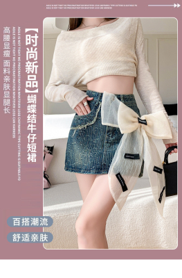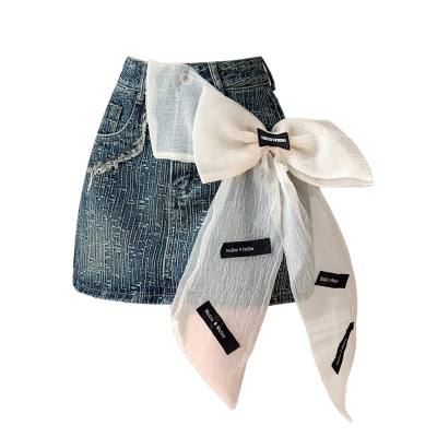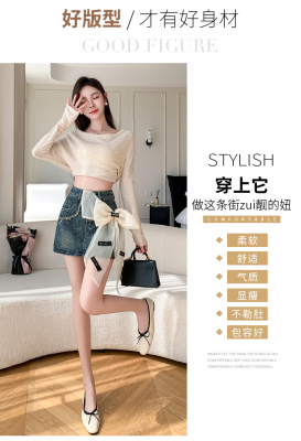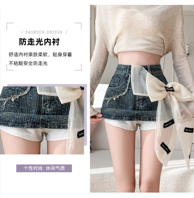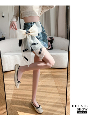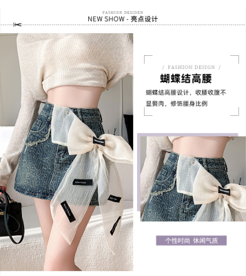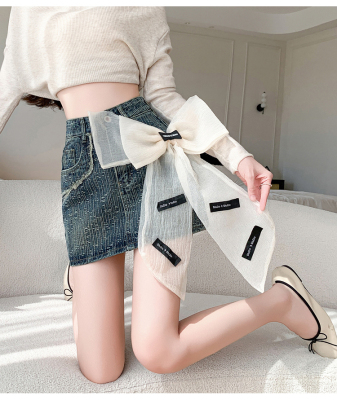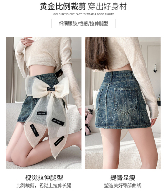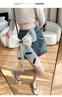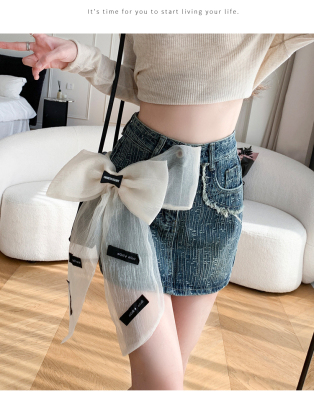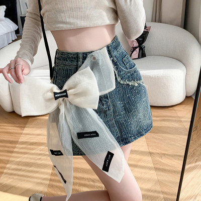 Real shot of heavy industry three-dimensional bow denim skirt for women 2024 new style high waist anti-exposure fried street bag hip skirt trendy