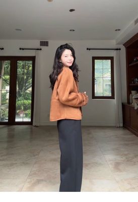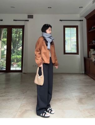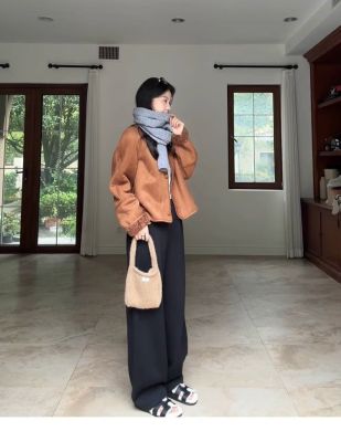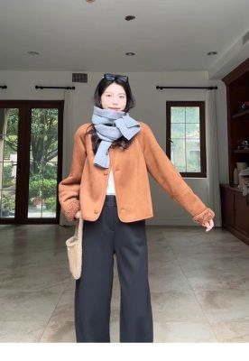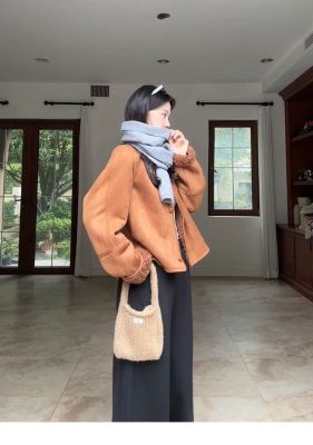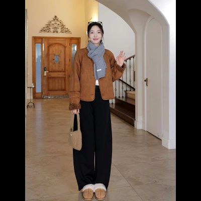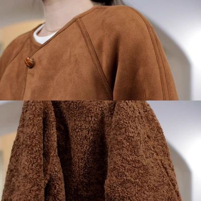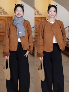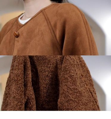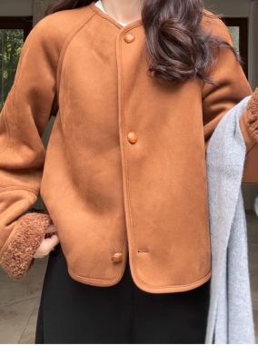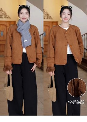 2024 new autumn and winter style retro warm and loose thickened suede jacket winter versatile plus velvet for student girls