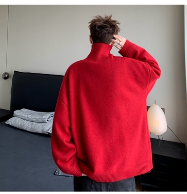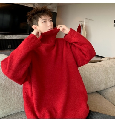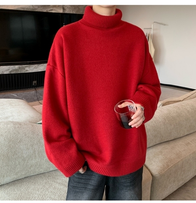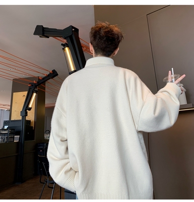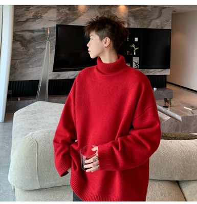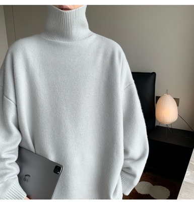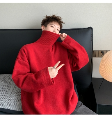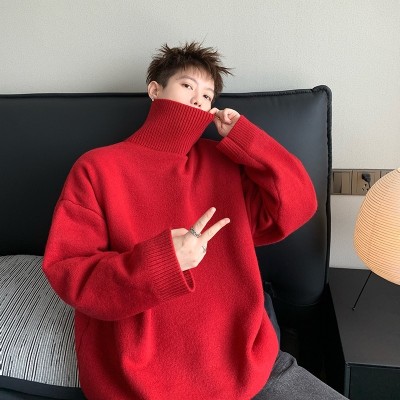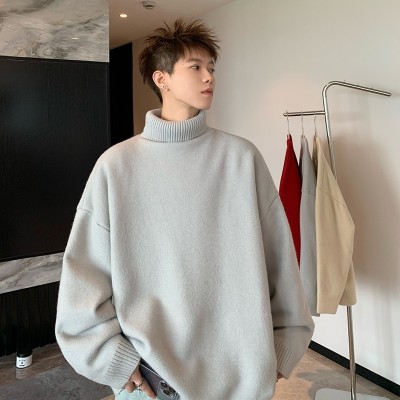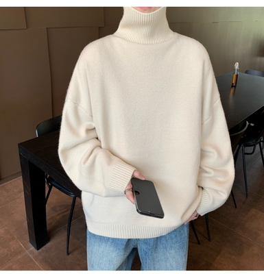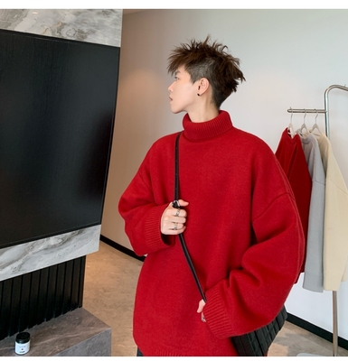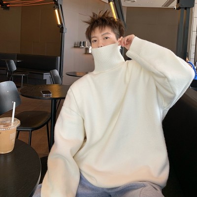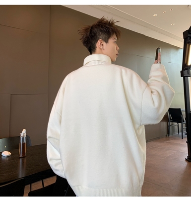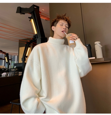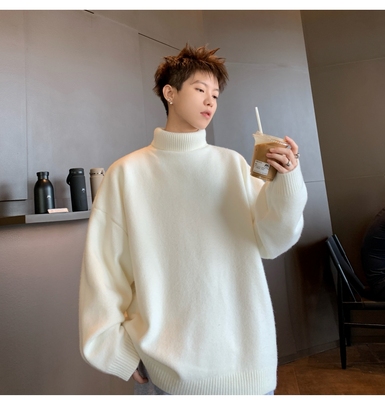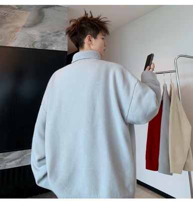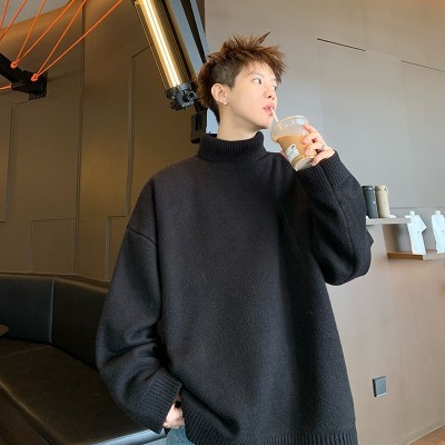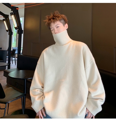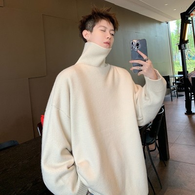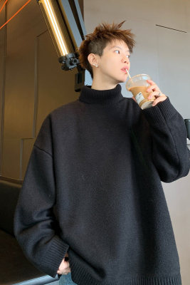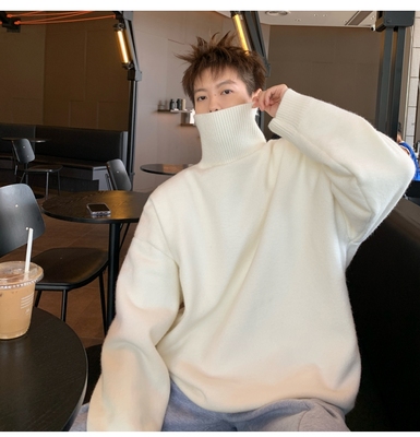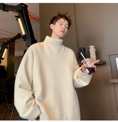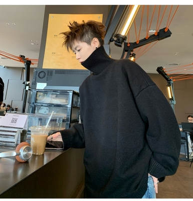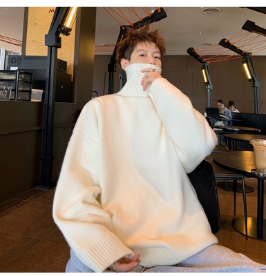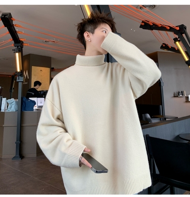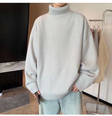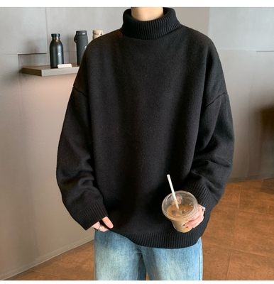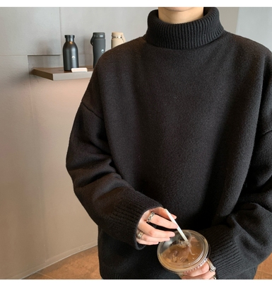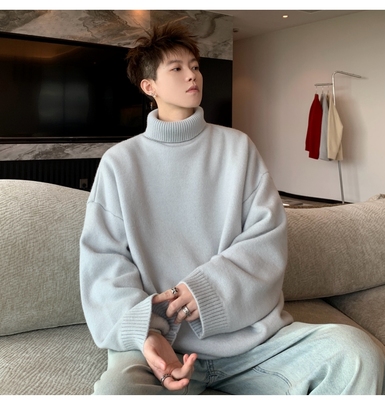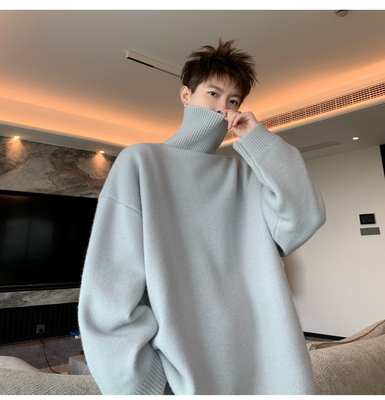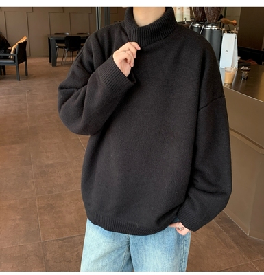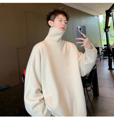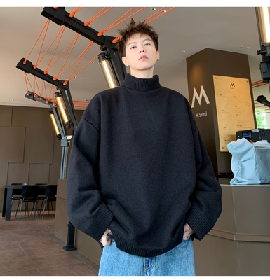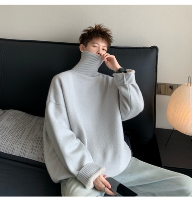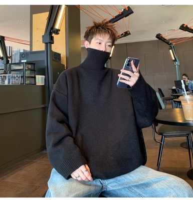 Turtleneck sweater for men in autumn and winter, warm inner layering shirt, trendy loose and lazy style knitted line