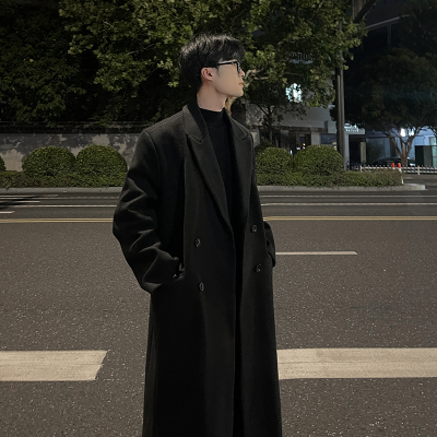 Korean style woolen coat men's loose extended coat trendy windbreaker