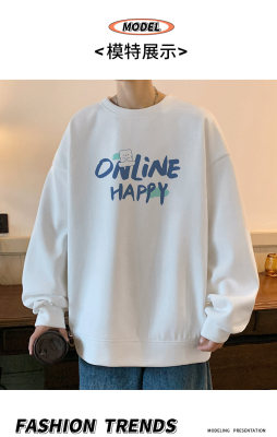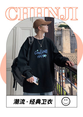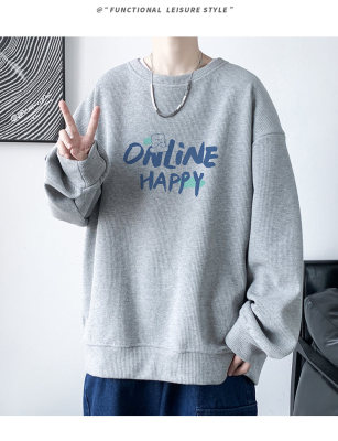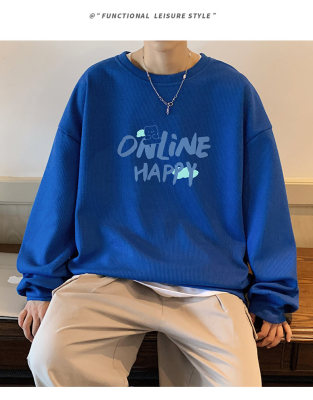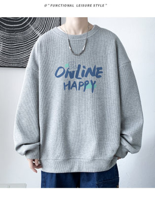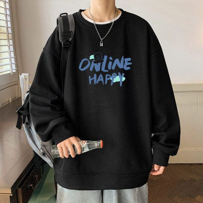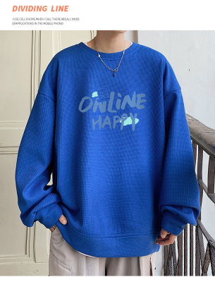 Waffle! Spring new men's trendy round neck sweatshirt student tops