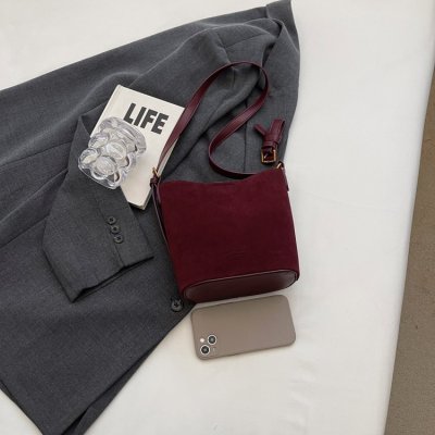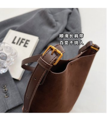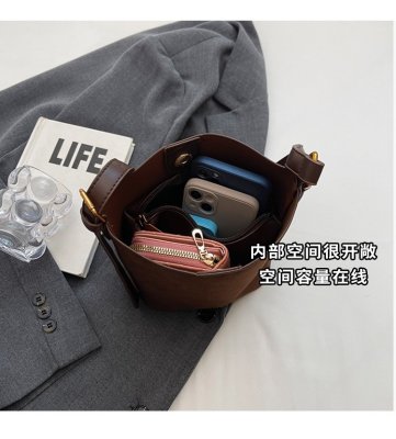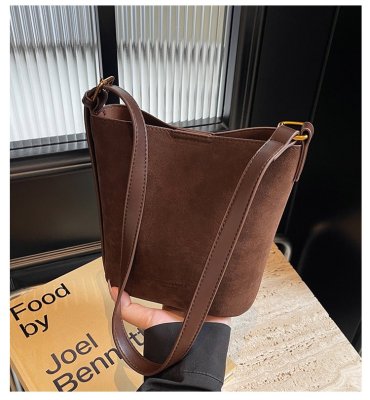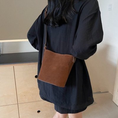 Bag niche design women's crossbody bag 2024 new simple frosted bucket bag versatile fashion shoulder bag
