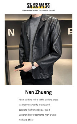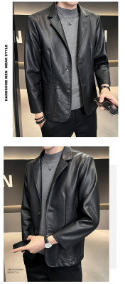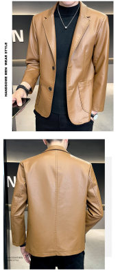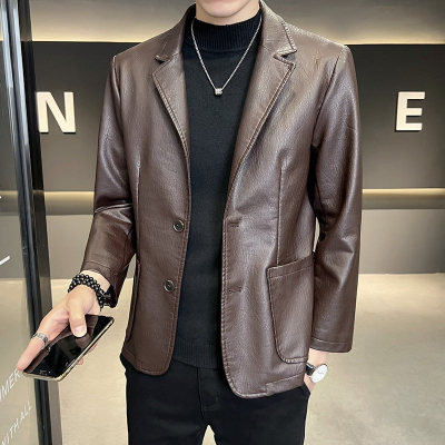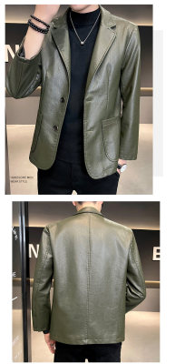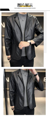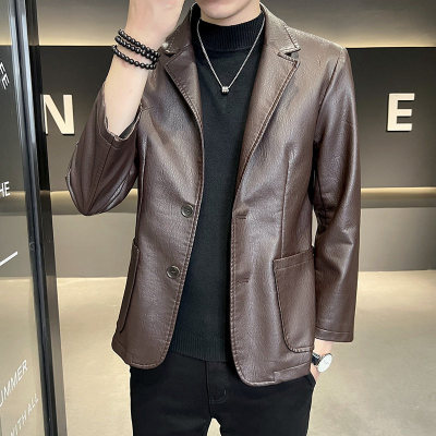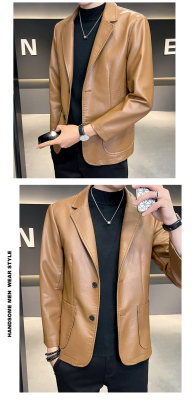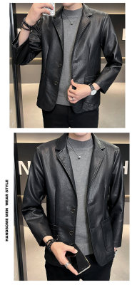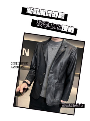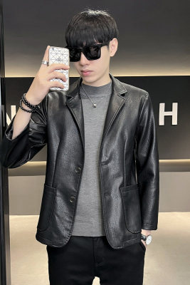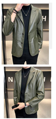 New Men's Casual Fashion Personalized PU Leather Lapel Small Suit