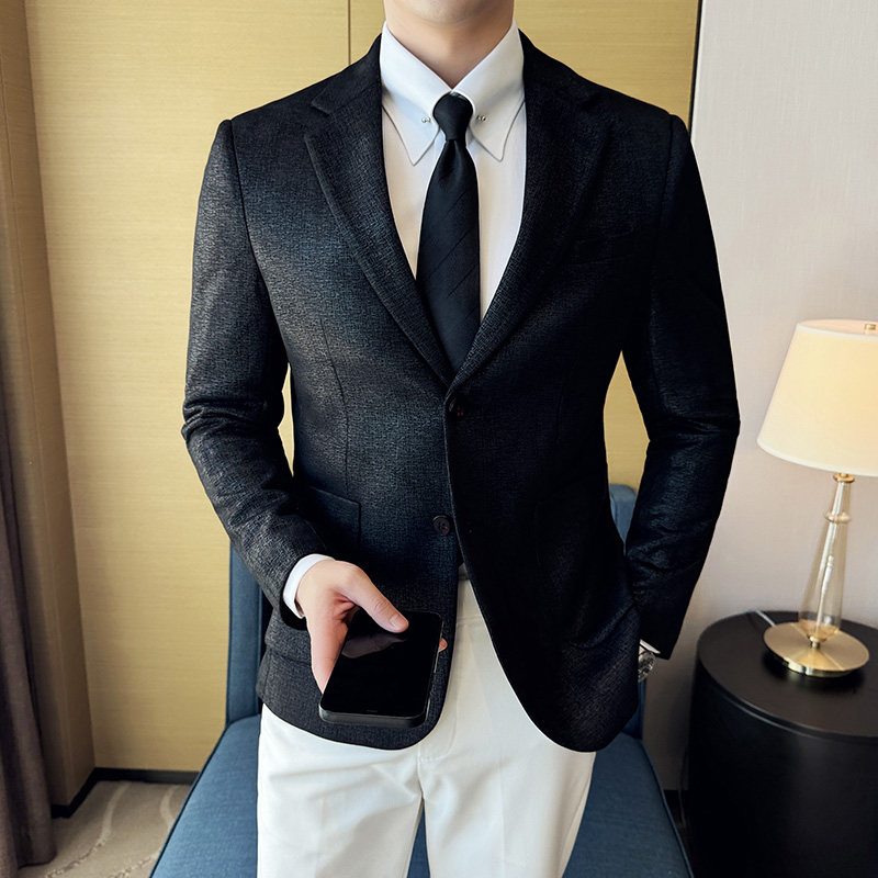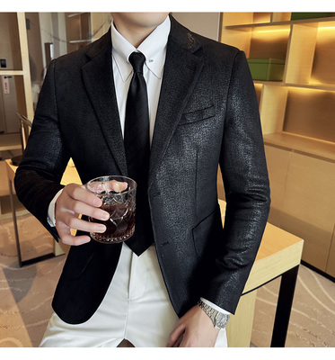 Korean style slim fit suede gilding striped suit jacket