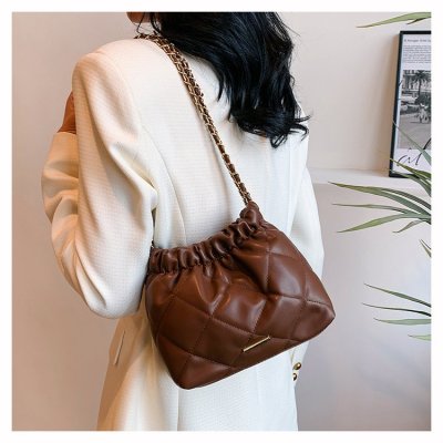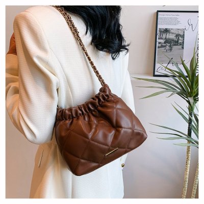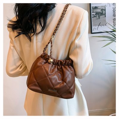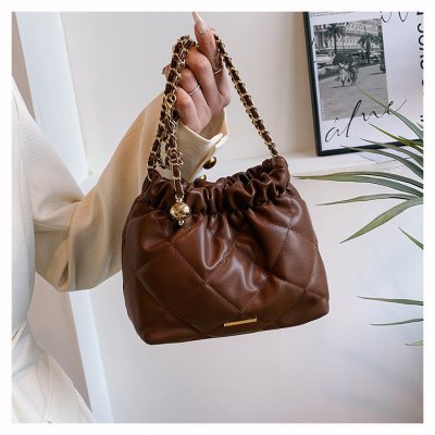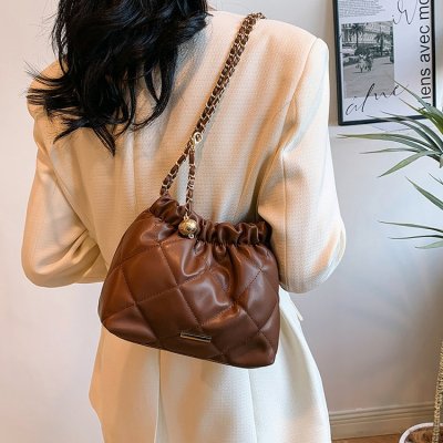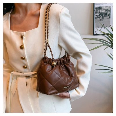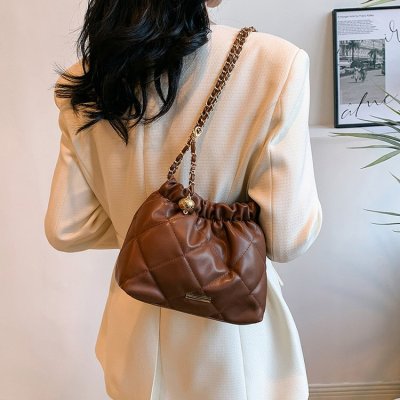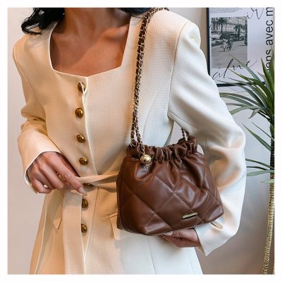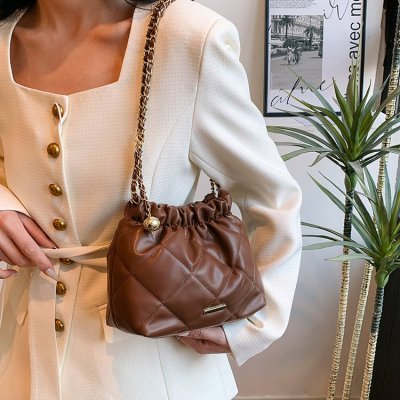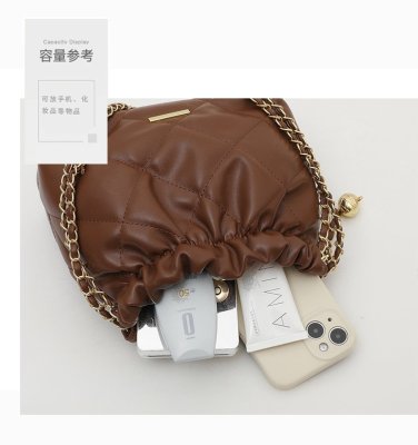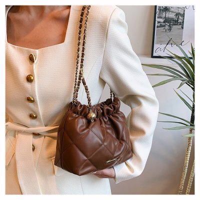 High-end textured small bag for women summer new style trendy niche rhombus chain bag single shoulder crossbody bag bucket bag