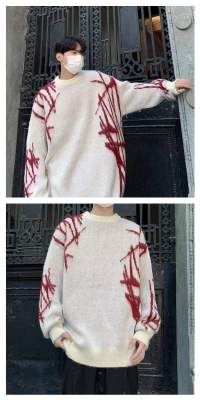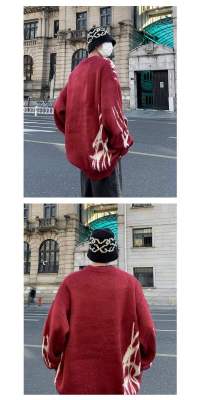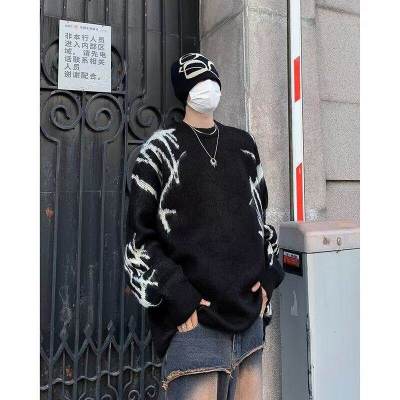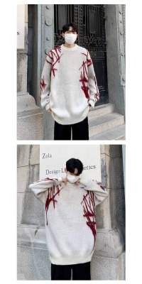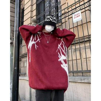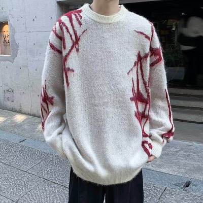 Autumn and winter round neck pullover sweater for men, trendy Japanese brand, thickened design sweater for teenagers
