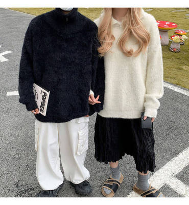 Turtleneck sweater men's half-zip loose lazy style sweater trendy brand versatile autumn and winter sweater jacket