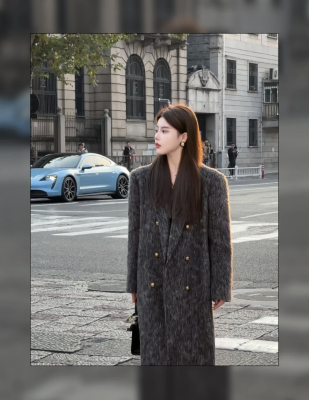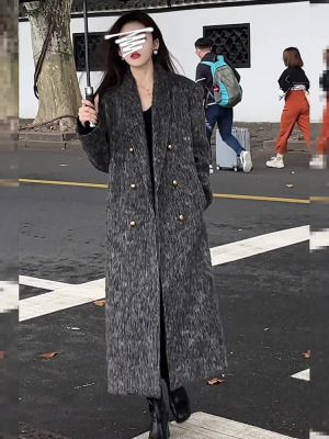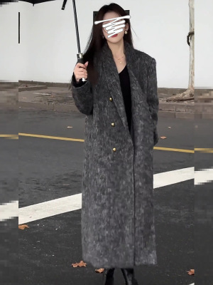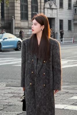 New winter fashionable high-end gray long plush coat