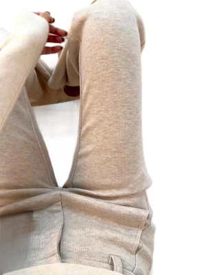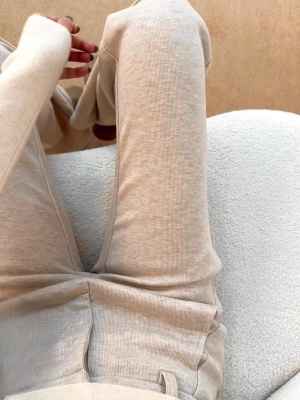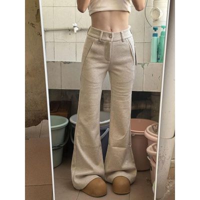 Korean version of American style new velvet oatmeal color high-waisted casual pants for women in spring, autumn and winter slimming and slightly flared sports pants trendy