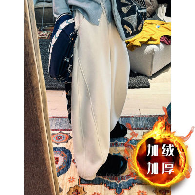 Korean chic pure cotton Chinese cotton brushed composite true super original banana pants type winter high waist casual pants for women
