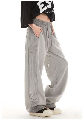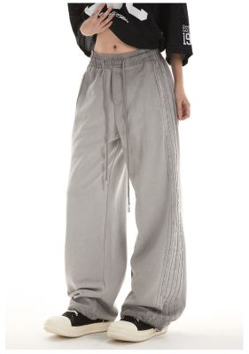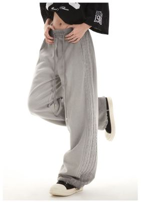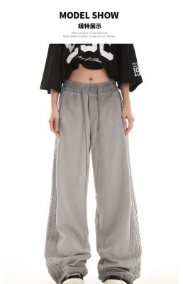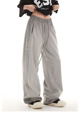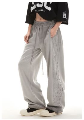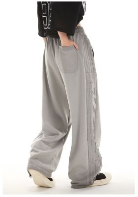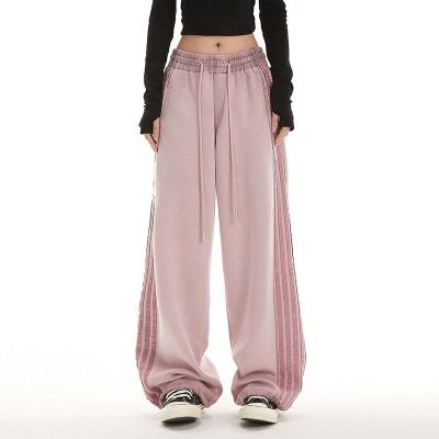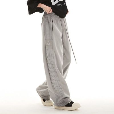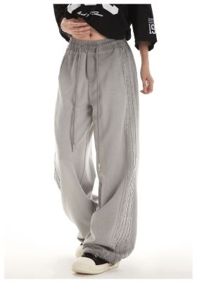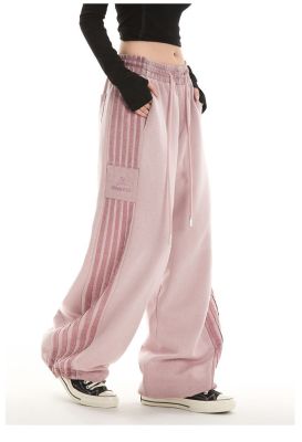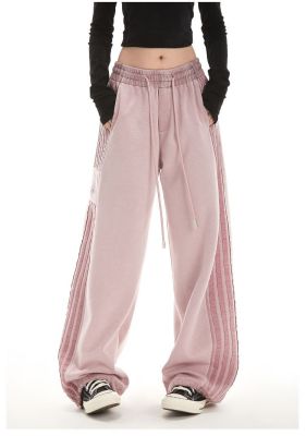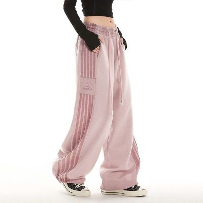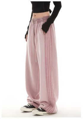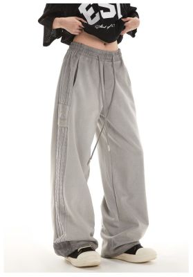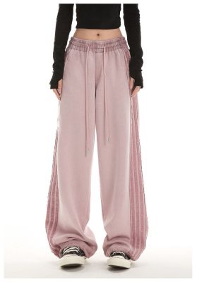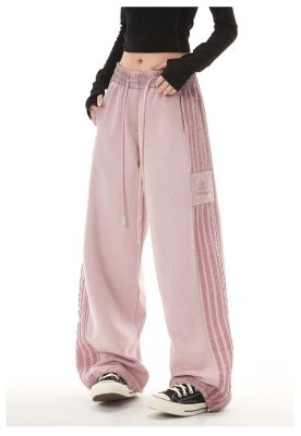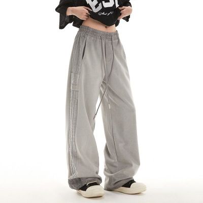 Original spray dyeing method striped splicing women's autumn and winter new fashion brand high street American loose straight drape casual pants