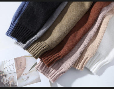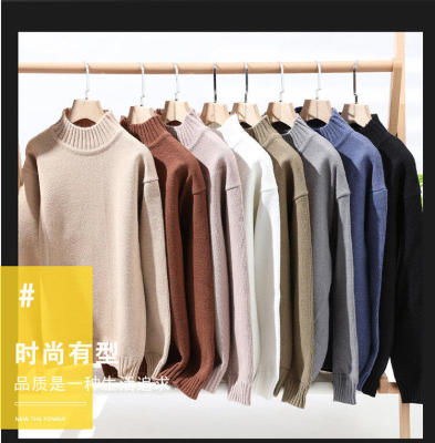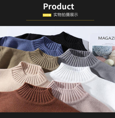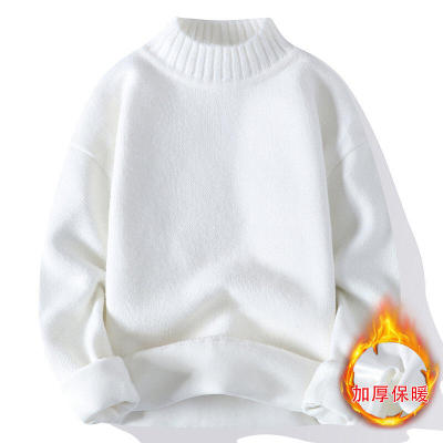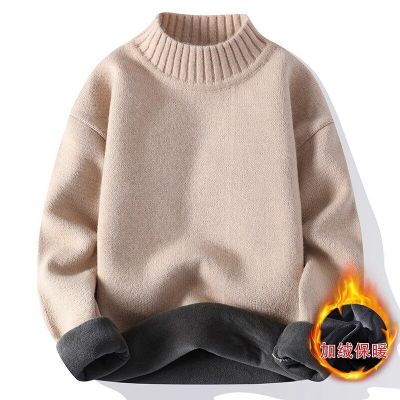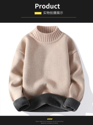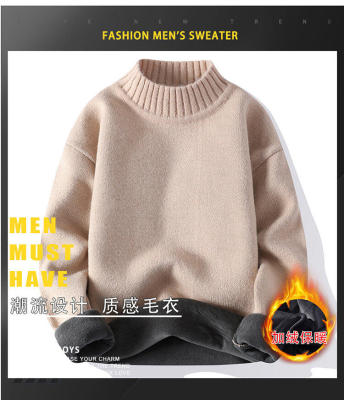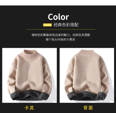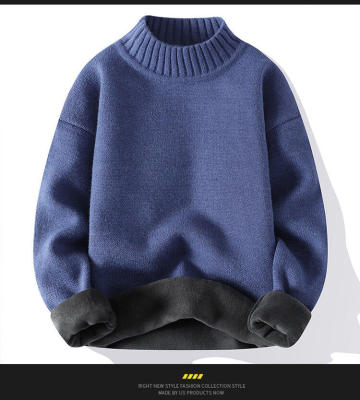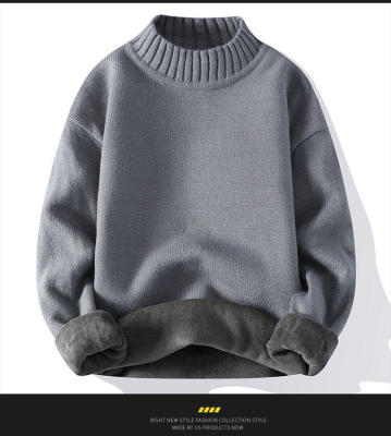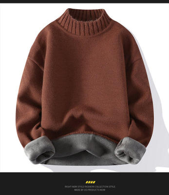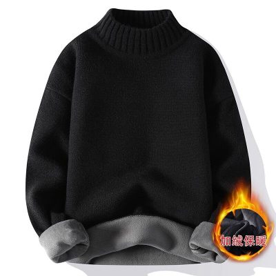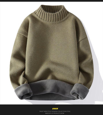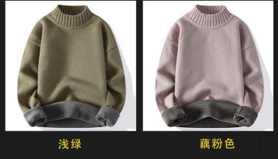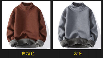 Solid color turtleneck sweater for men in winter plus velvet and thickened wasteland style sweater for men loose lazy style retro sweater
