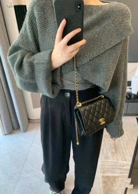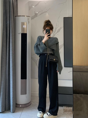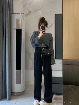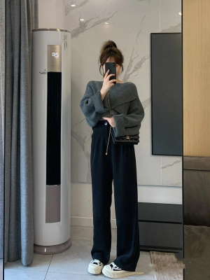 Women's clothing queen hits the street for small people cross sweater wide leg pants + beautiful back three-piece set