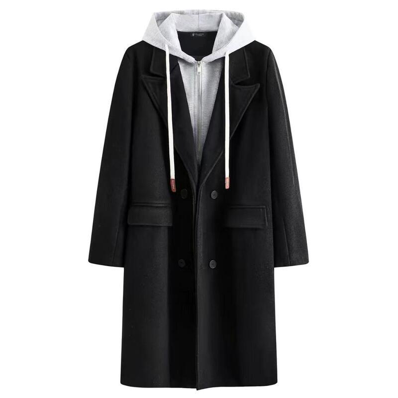 Winter men's mid-length woolen coat Korean style handsome fake two-piece hooded coat