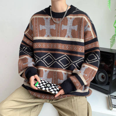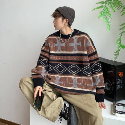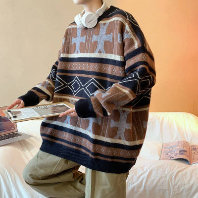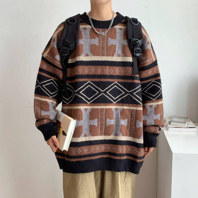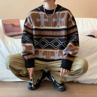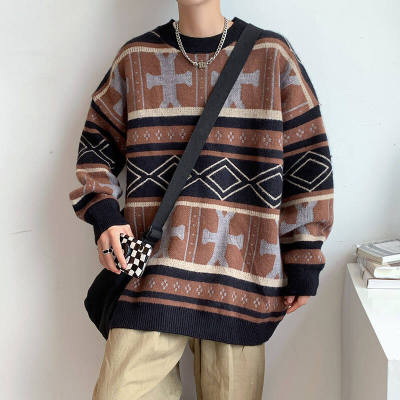 Autumn and winter trendy ethnic style large size knitted sweaters for men and women, lazy style, soft and waxy thickened loose sweaters and coats for fat people