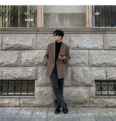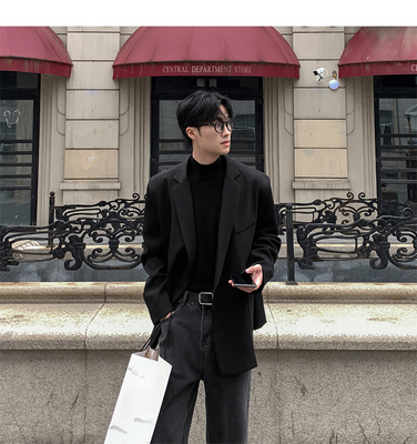 Autumn new Korean style loose small suit men's shoulder pads casual boys' suit jacket