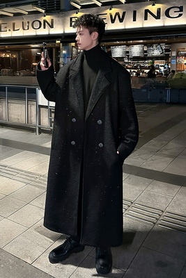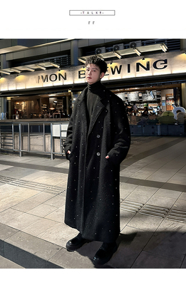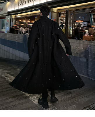 Men's knee-length woolen coat with trendy starry sky design and cotton woolen windbreaker jacket