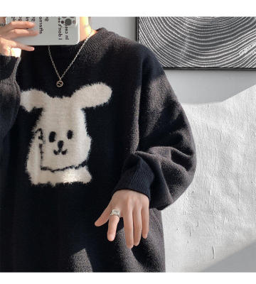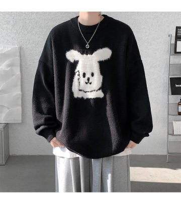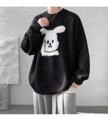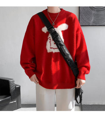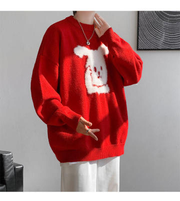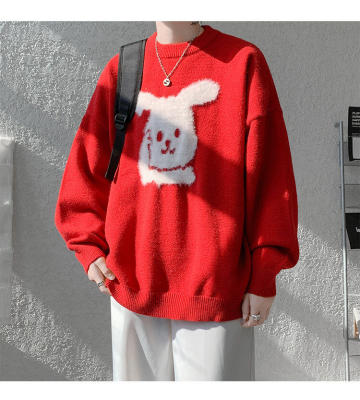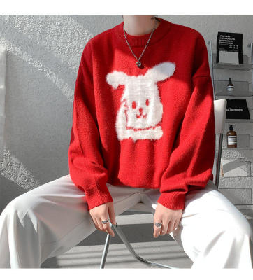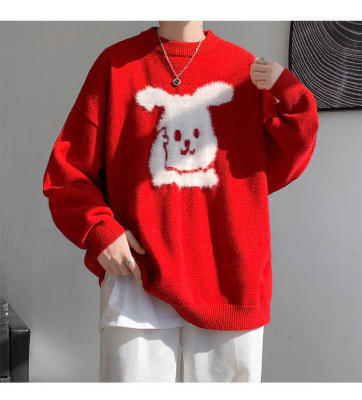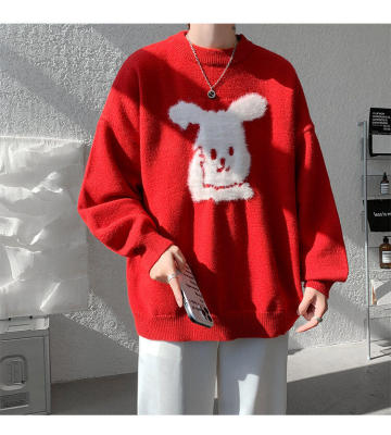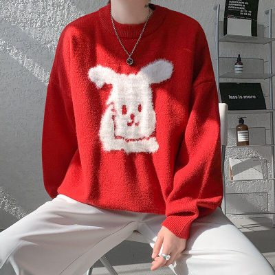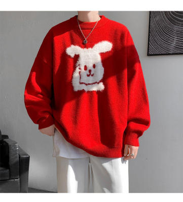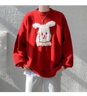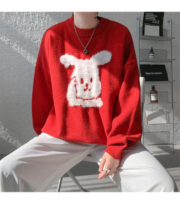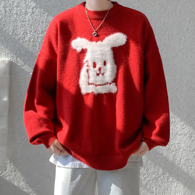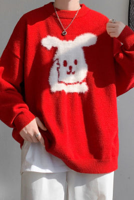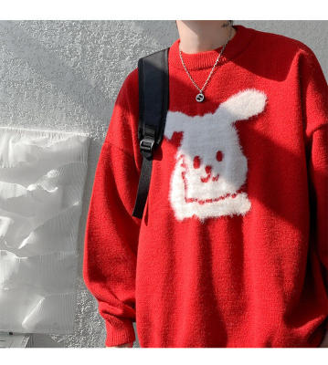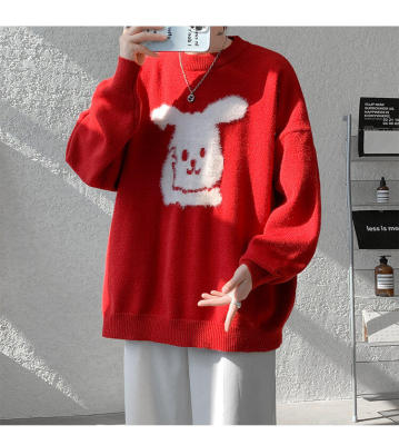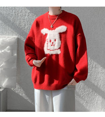 Arctic Velvet Rabbit Year Cartoon Red Christmas Sweater Men's Sweater Extra Large Size