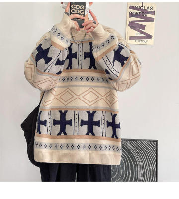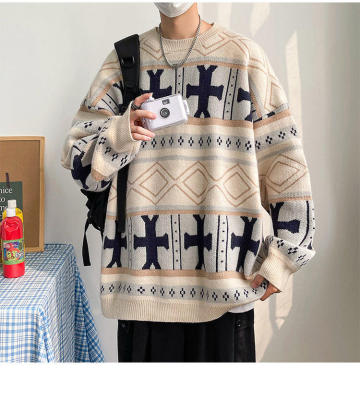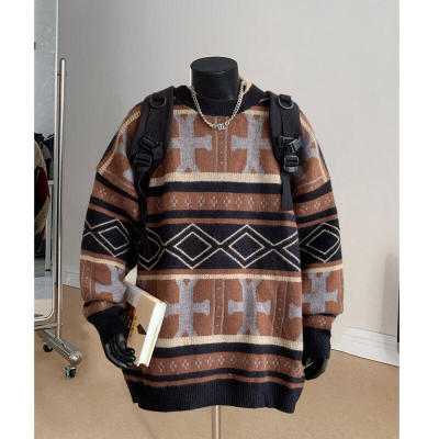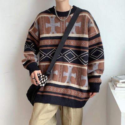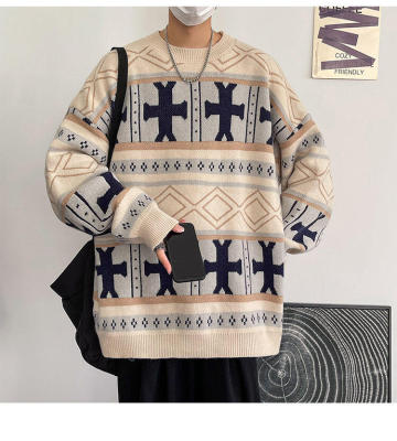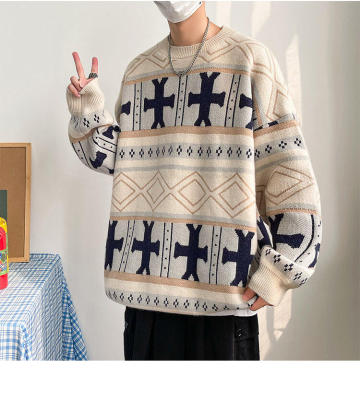 Fake style Christmas round neck thickened sweater pullover Chinese style foreign trade large size men's glutinous casual sweater