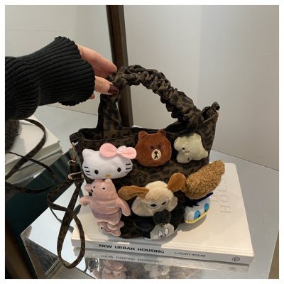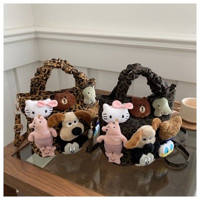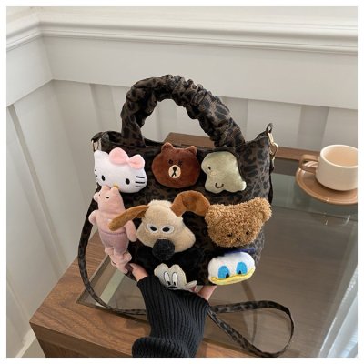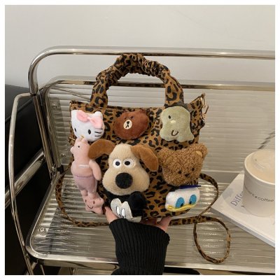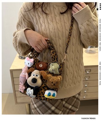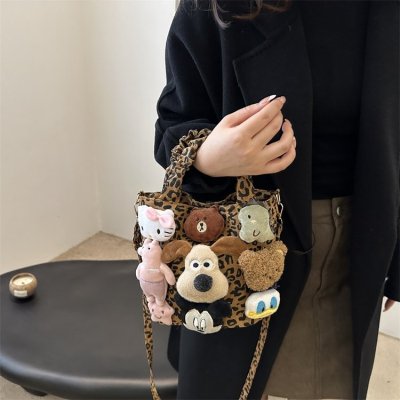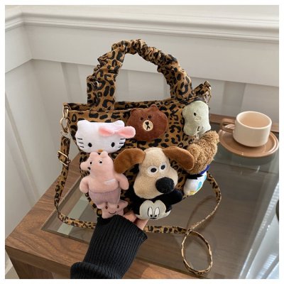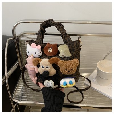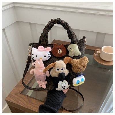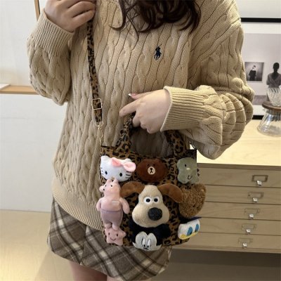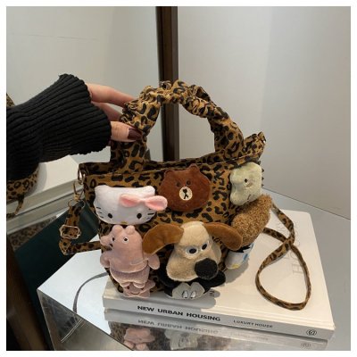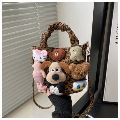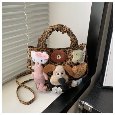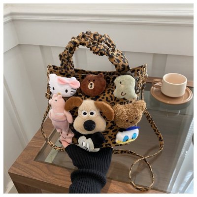 Niche design doll leopard print bag for women 2024 new autumn and winter crossbody bag shoulder handbag